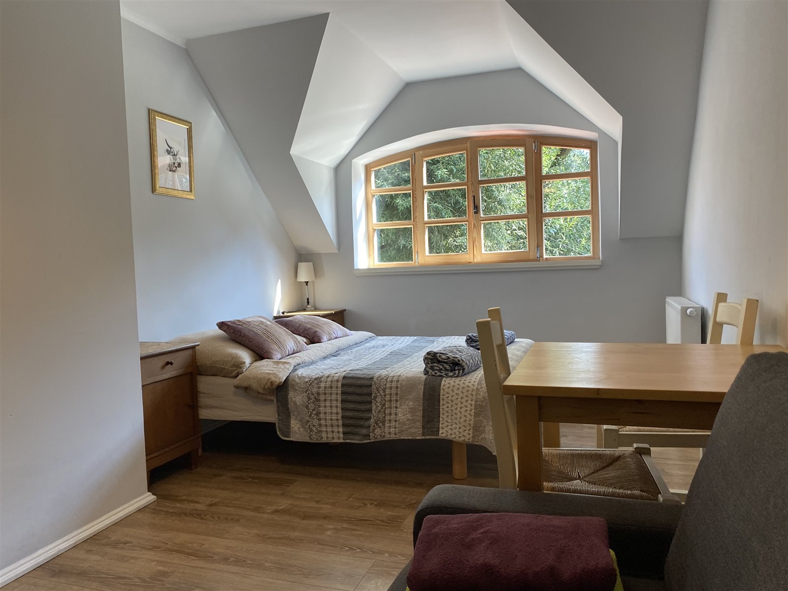 - Poddasze pełni funkcję hotelową – znajdziemy tu komfortowe pokoje z prywatnymi łazienkami, z których część posiada bezpośredni dostęp do balkonów.