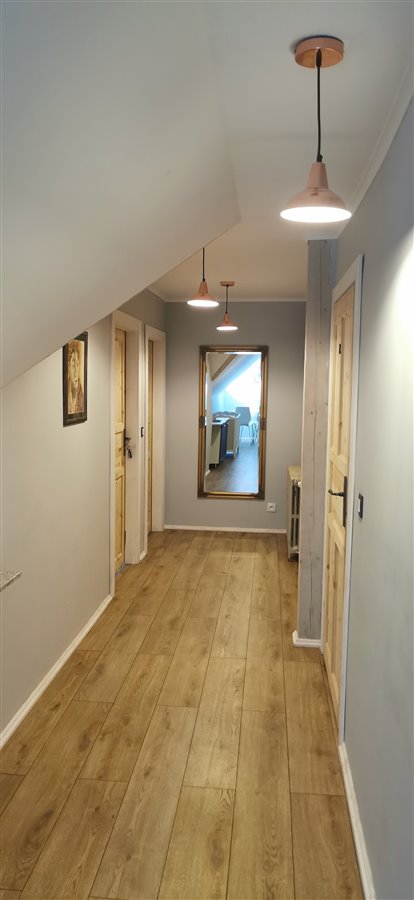 - Wykończenia wnętrz obejmują m.in. drewnianą stolarkę okienną oraz wysokiej klasy panele podłogowe o zwiększonej odporności na ścieranie.