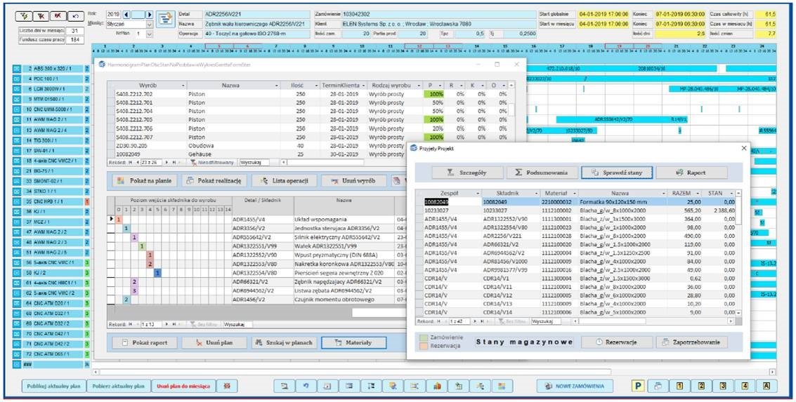 • Kompleksowe funkcje: precyzyjne planowanie produkcji, monitorowanie wydajności, analiza kosztów produkcji, nadzór nad statusem realizacji zleceń i inne.