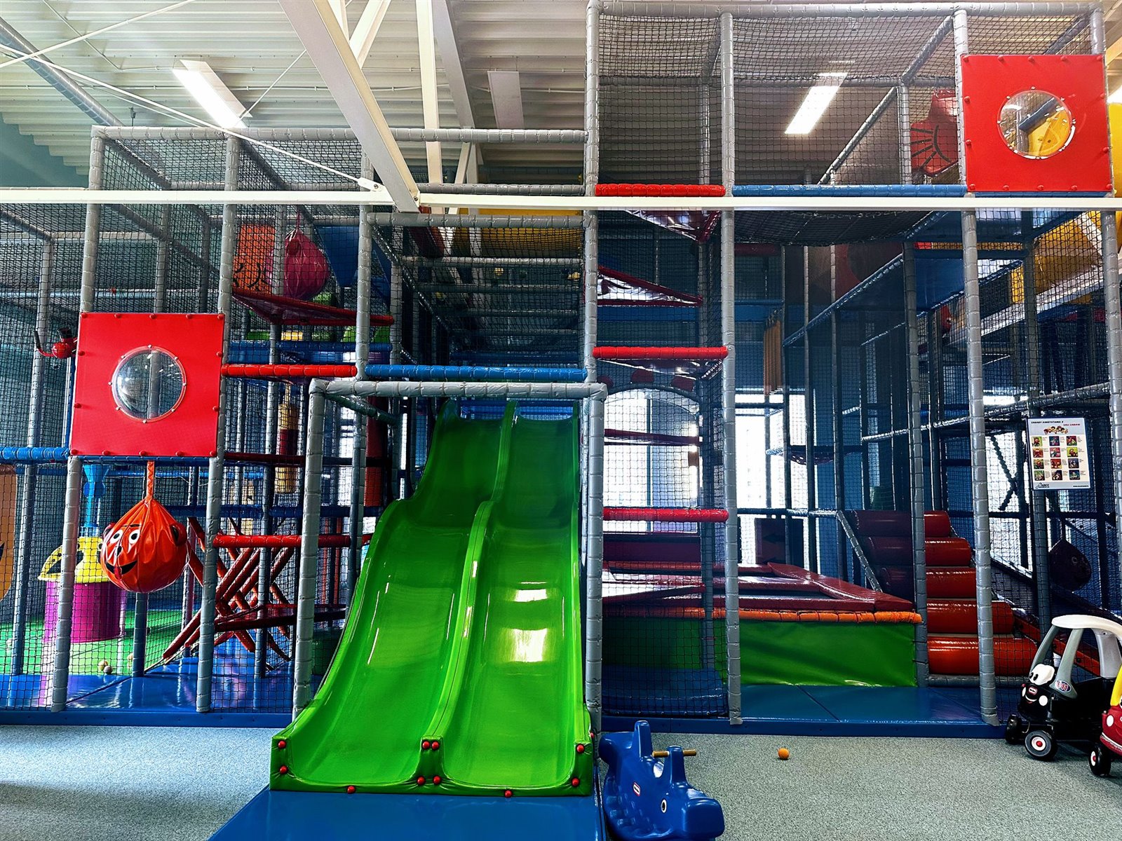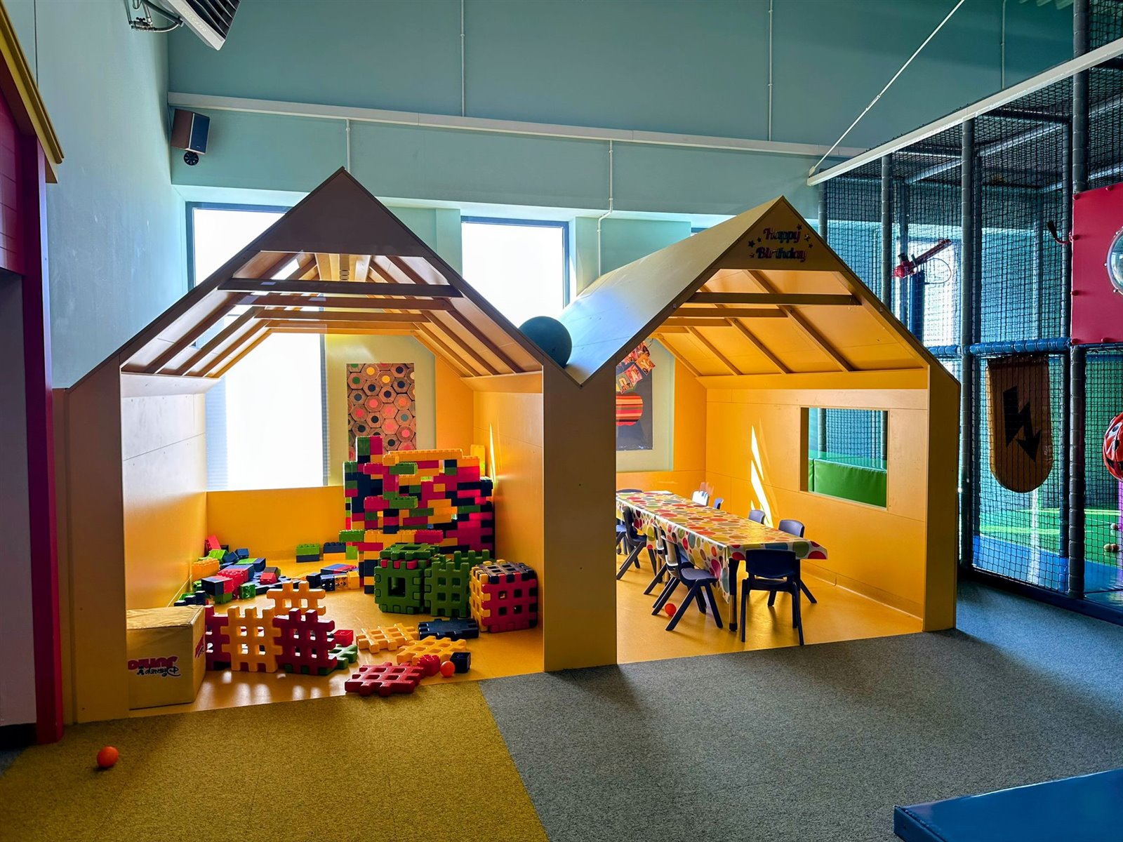 Konstrukcja zabaw, w sali o wysokości 6m, dużo przestrzeni kompaktowe rozwiązania i praktyczna organizacja. O