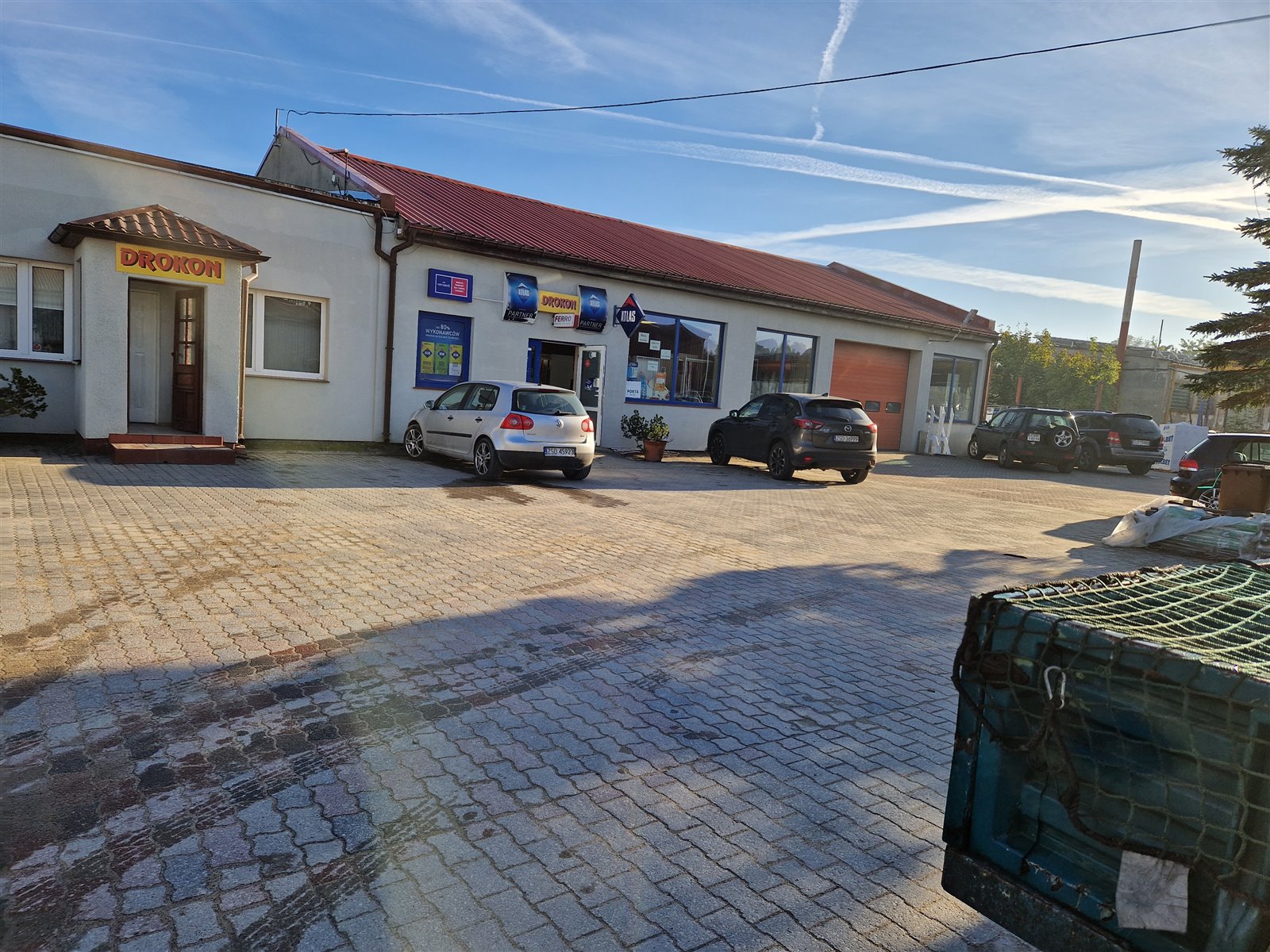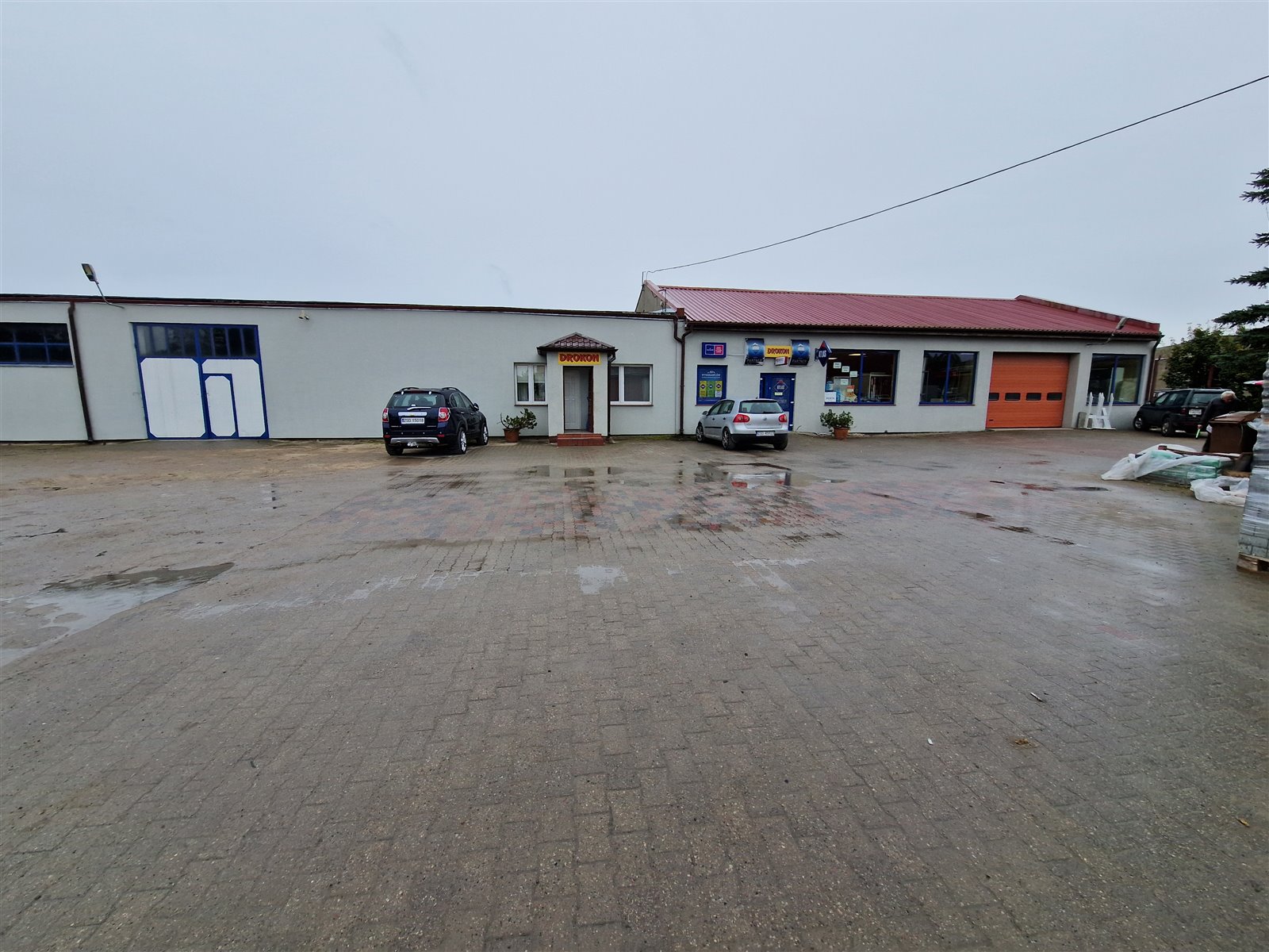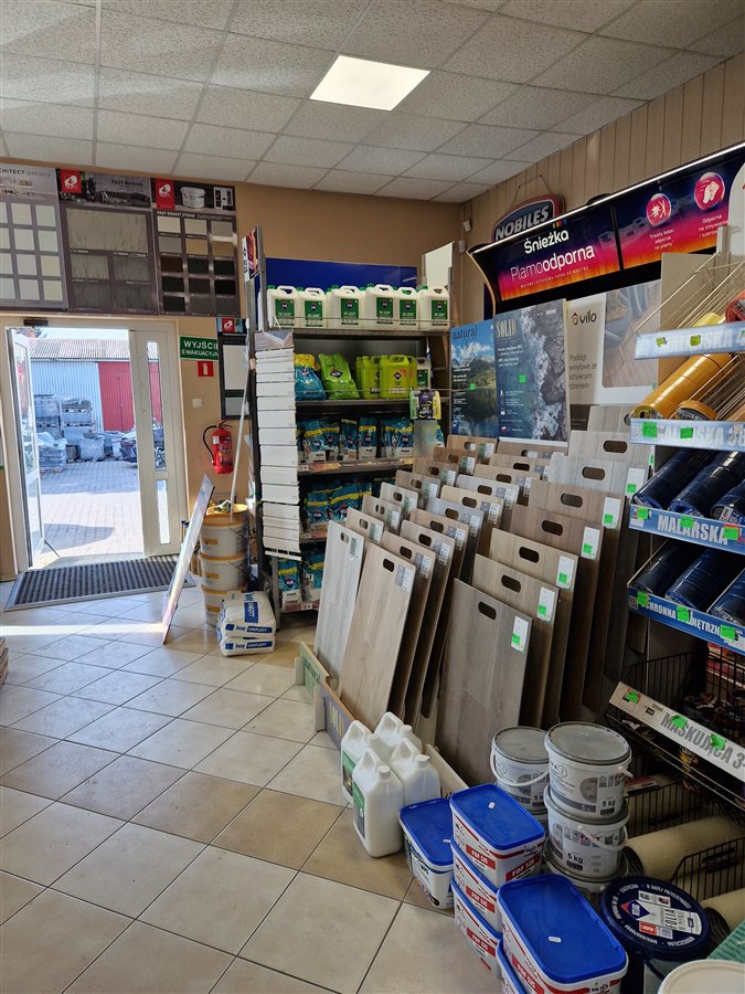 • Kompleks budynków (łącznie 1403 m²), w tym: hala produkcyjna, obiekt biurowy, sklep z artykułami budowlanymi, 2 hale magazynowe.