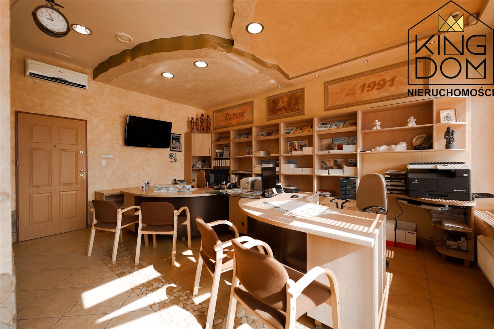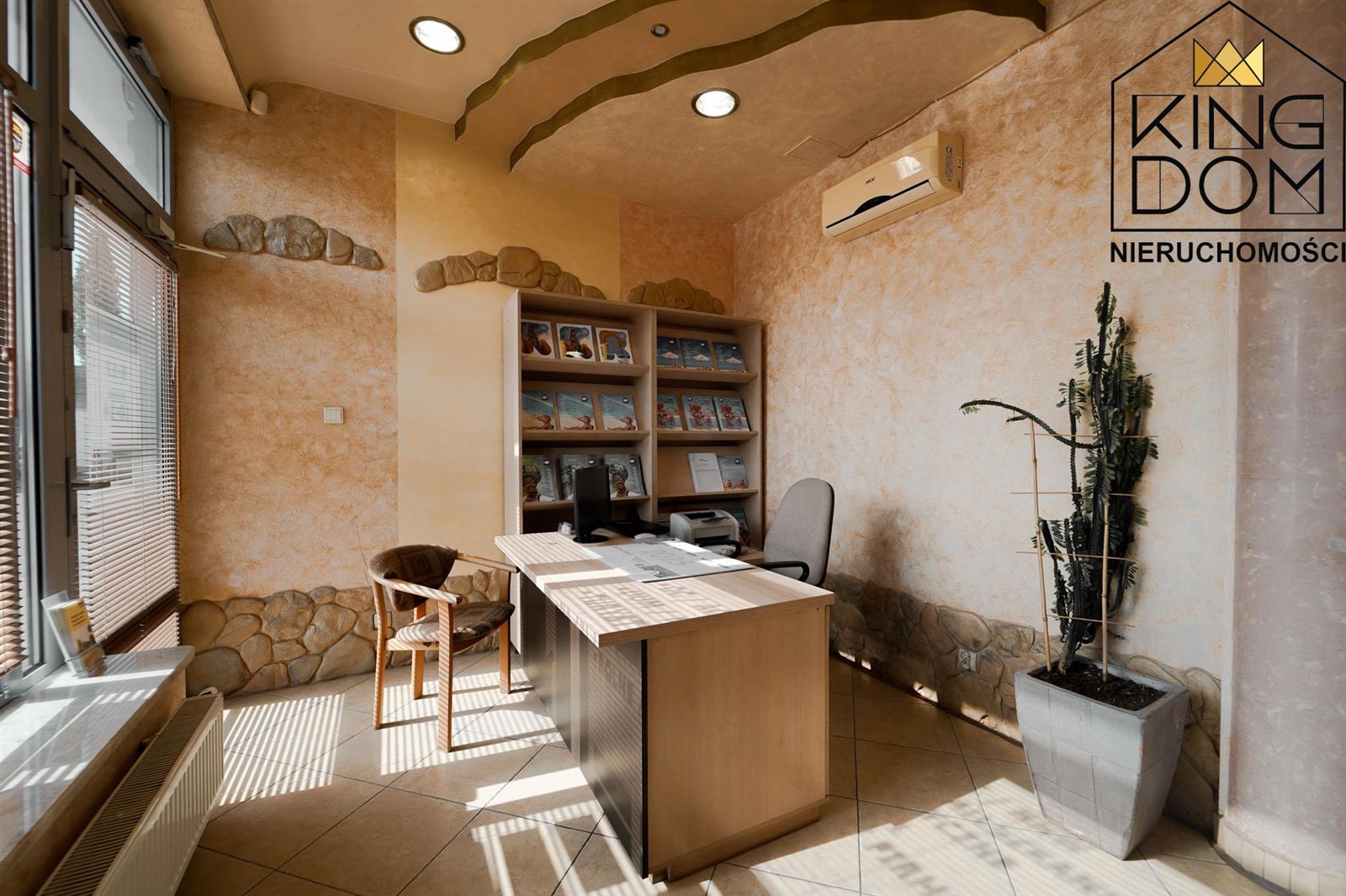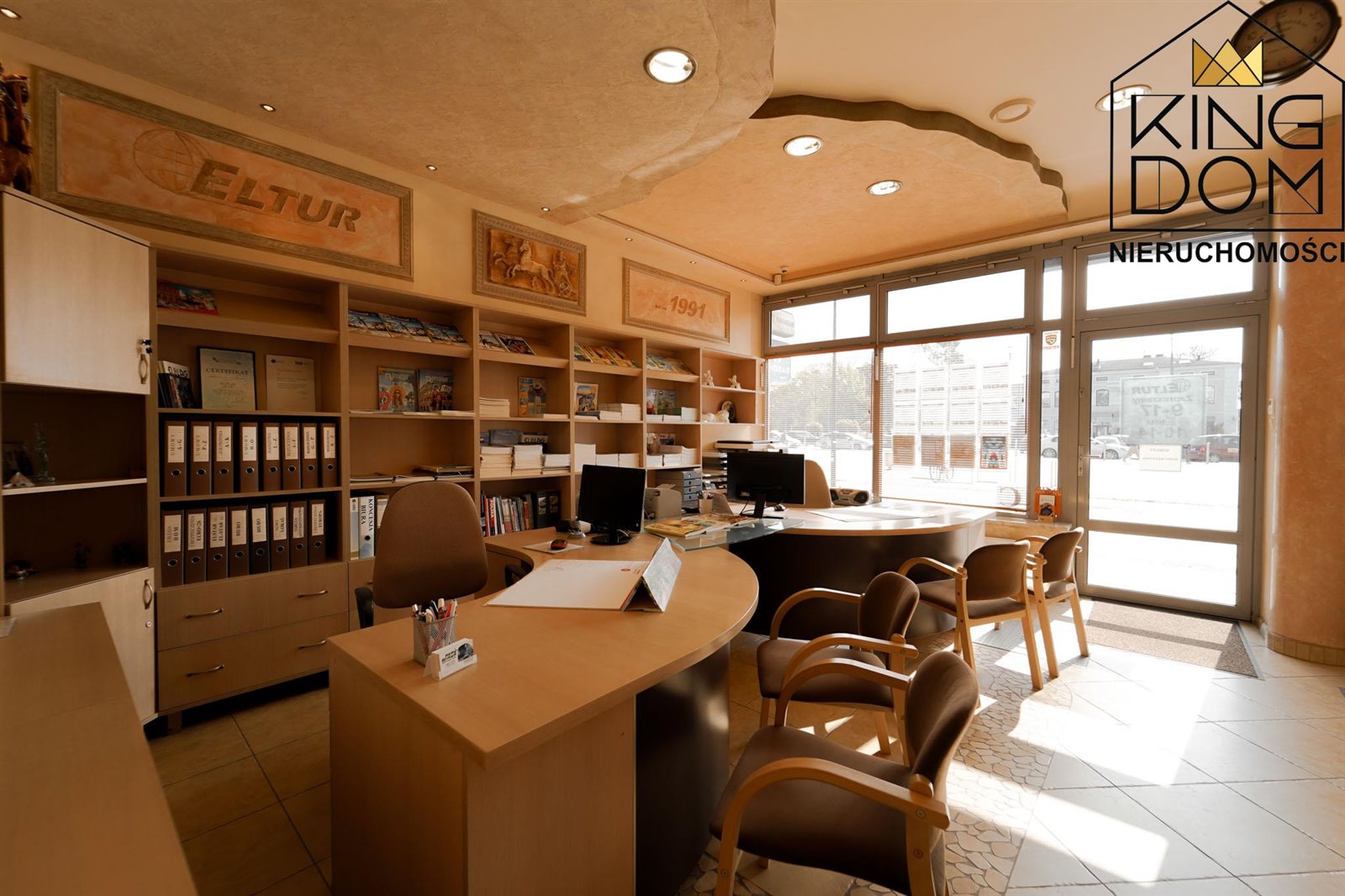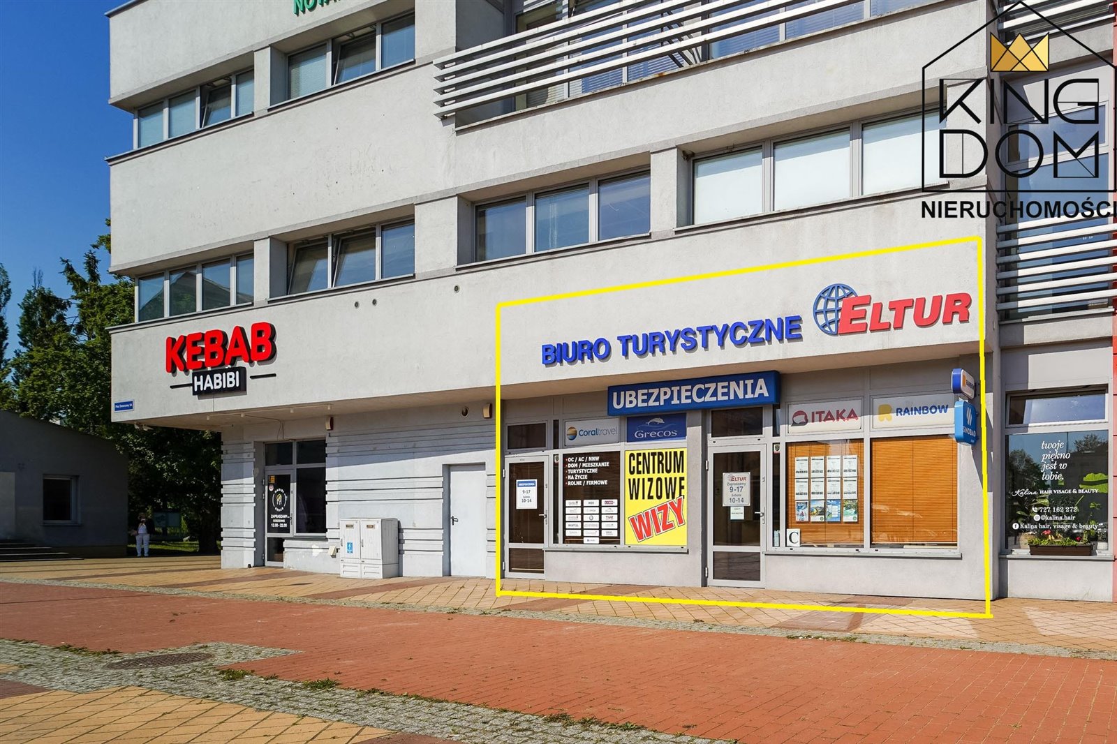 Lokal biura o powierzchni 43,23 m² mieści się na parterze zadbanego, dwupiętrowego budynku z windą, w którym funkcjonują inne lokale handlowo-usługowe. Składa się z przestronnej sali sprzedaży, punktu sprzedaży, zaplecza socjalnego i toalety.