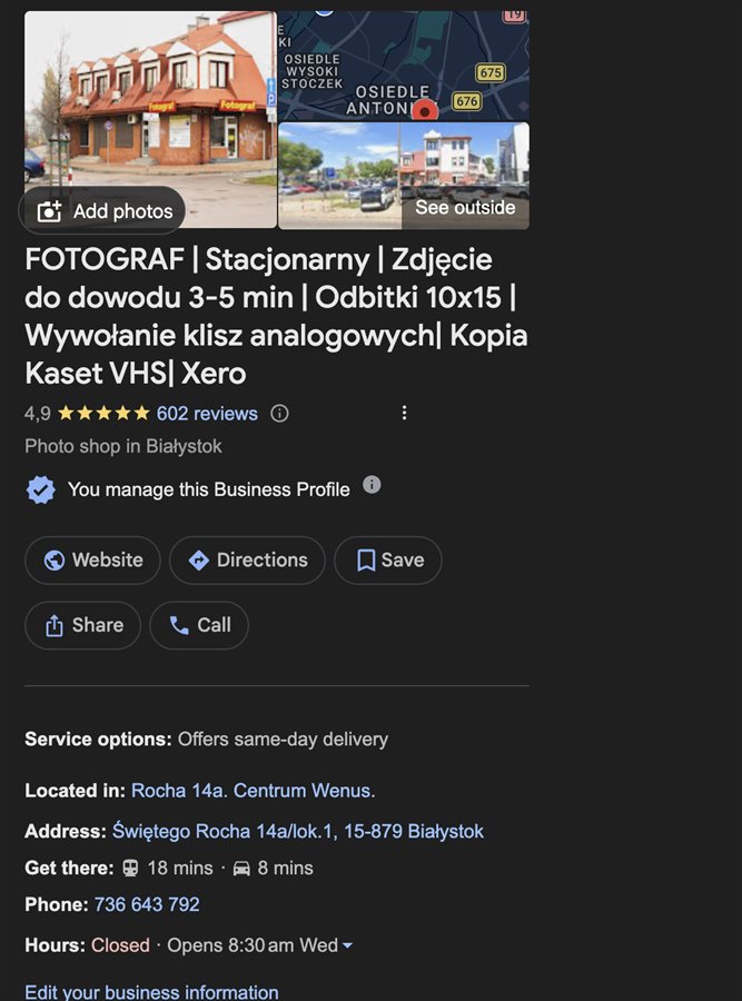 biznes fotograficzny 25 lat, bialystok centrum 1000-1700 dziennie