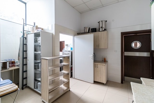 - w pełni wyposażona kuchnia wraz z pomieszczeniami pomocniczymi