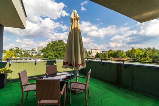 - duży taras z możliwością rozbudowania o kolejne ok. 7 pokoi hotelowych. Pozwalają na to