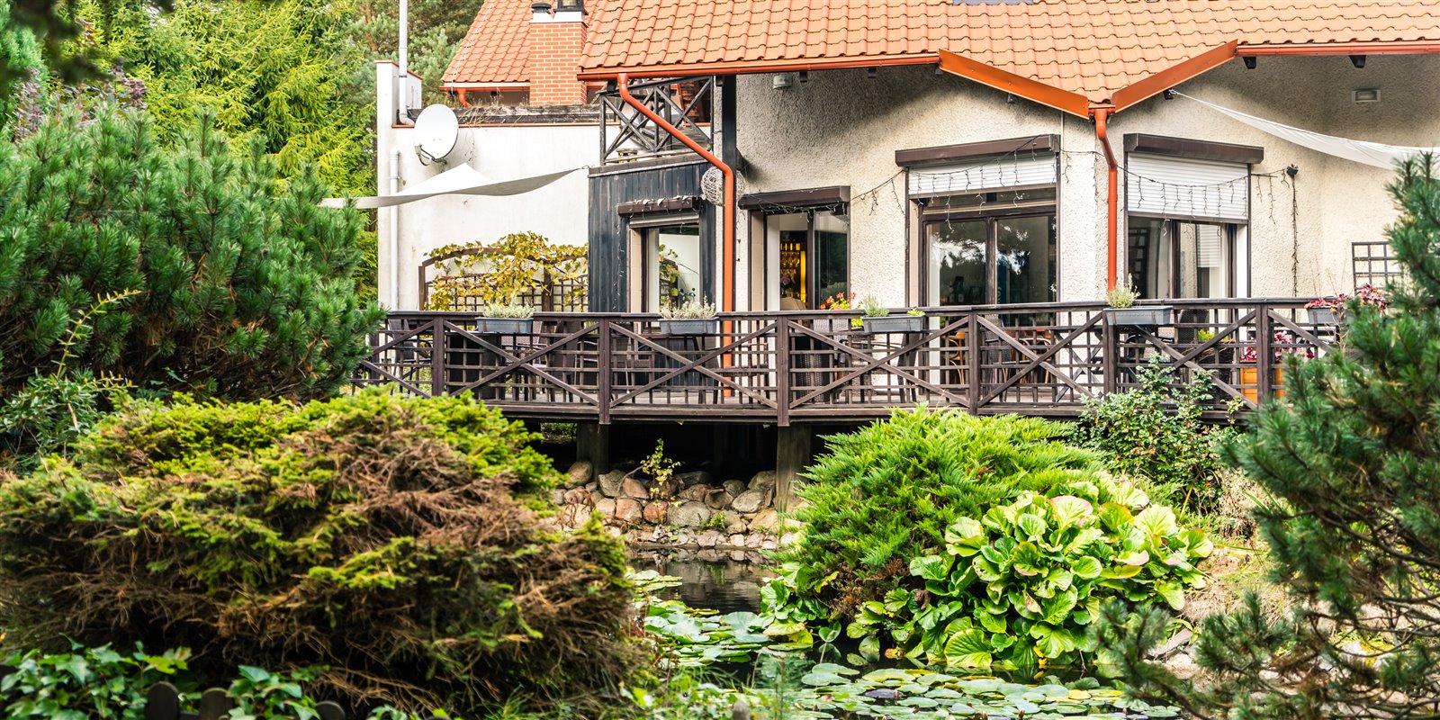 Z restauracji wyjście na duży taras z widokiem na staw, gdzie każdy posiłek na łonie natury będzie smakował lepiej. Rodzice na pewno docenią usytuowany obok plac zabaw dla dzieci, który widać z poziomu tarasu. Każdy z klientów znajdzie tu idealnie miejsce dla siebie.