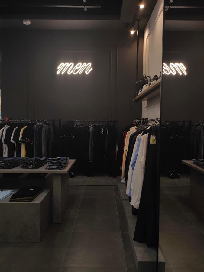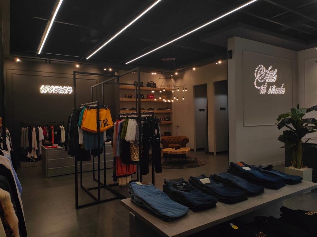 • Luksusowe wykończenie: Wnętrze butiku wyposażone jest w nowoczesne stojaki, wieszaki na odzież oraz stylowe meble, które tworzą harmonijną i atrakcyjną prezentację asortymentu.