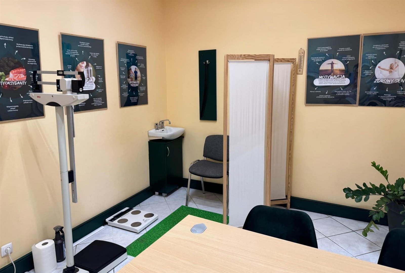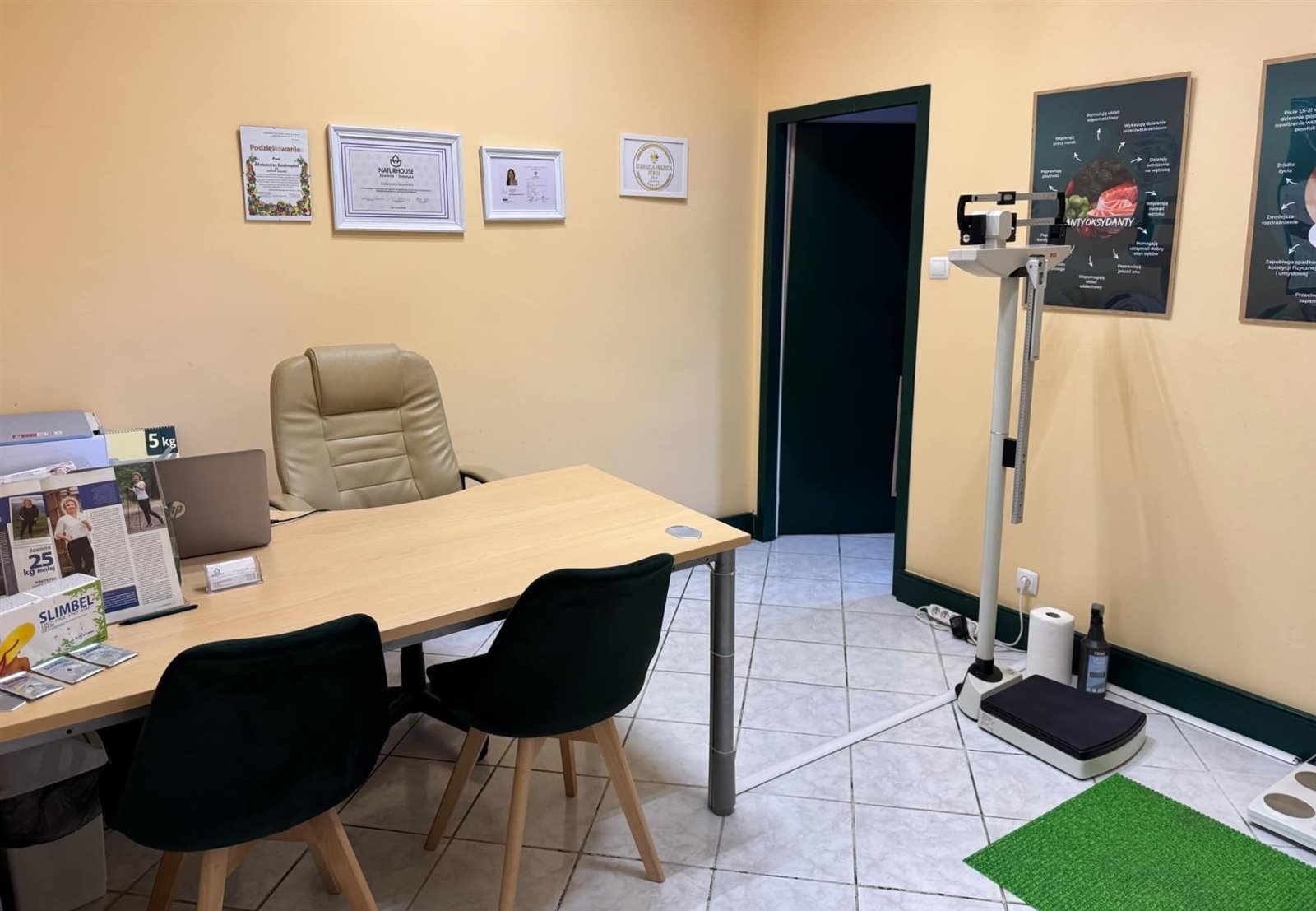 W pełni wyposażona sala sprzedaży, gabinet dietetyka oraz zaplecze. W lokalu są wszystkie potrzebne do prowadzenia działalności meble i urządzenia, w tym wagi i komputery.