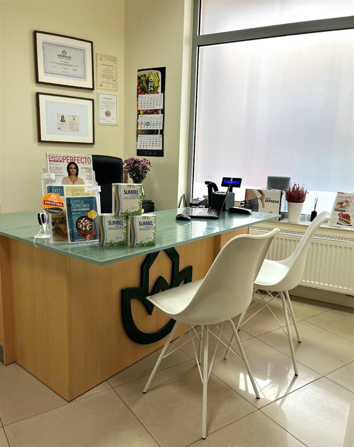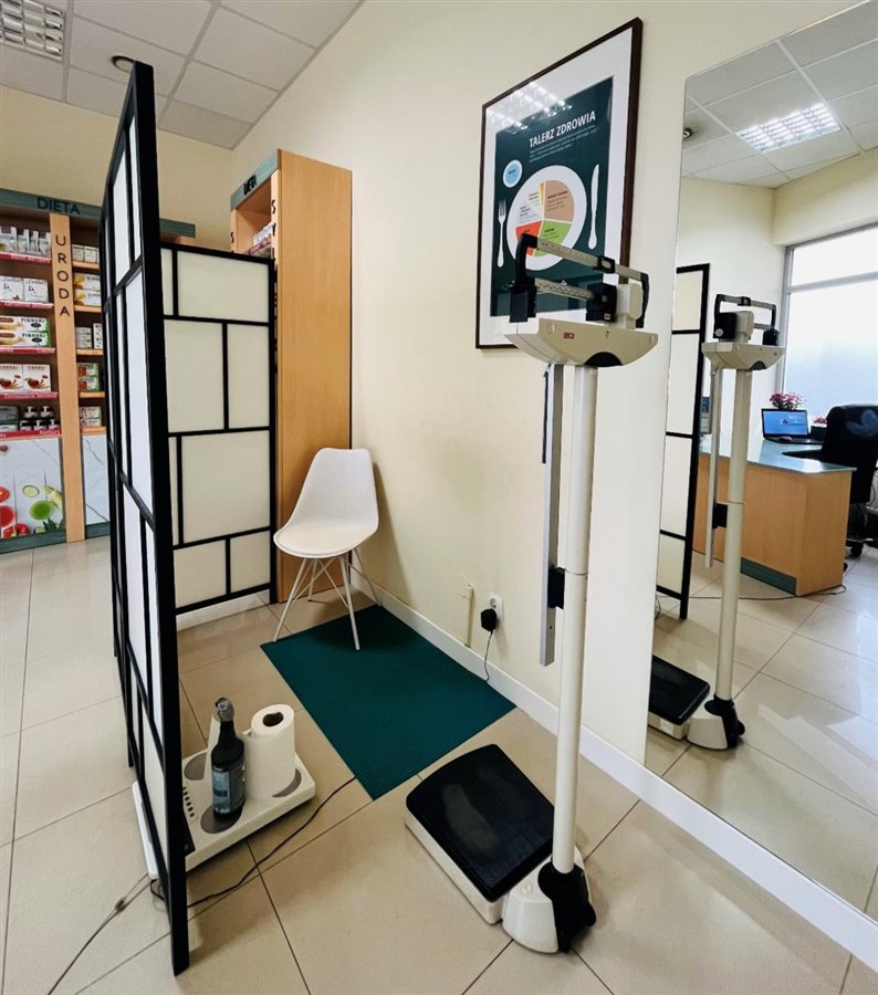 W pełni wyposażona sala sprzedaży, gabinet dietetyka oraz zaplecze. Lokal wyposażony jest w potrzebne meble, wagi i komputery.