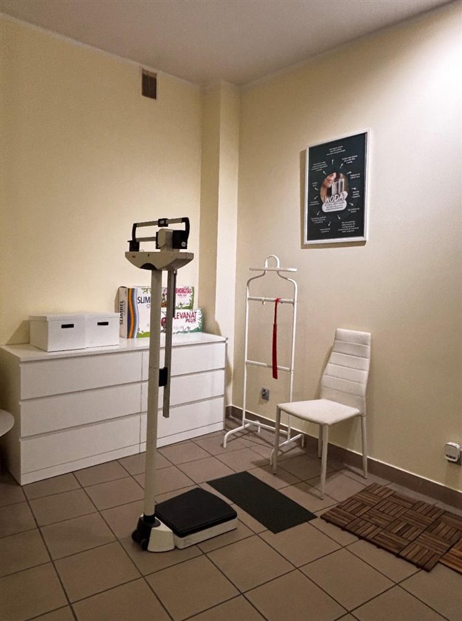 W pełni wyposażona sala sprzedaży, gabinet dietetyka oraz zaplecze. Lokal wyposażony jest w potrzebne meble, wagi i komputery.