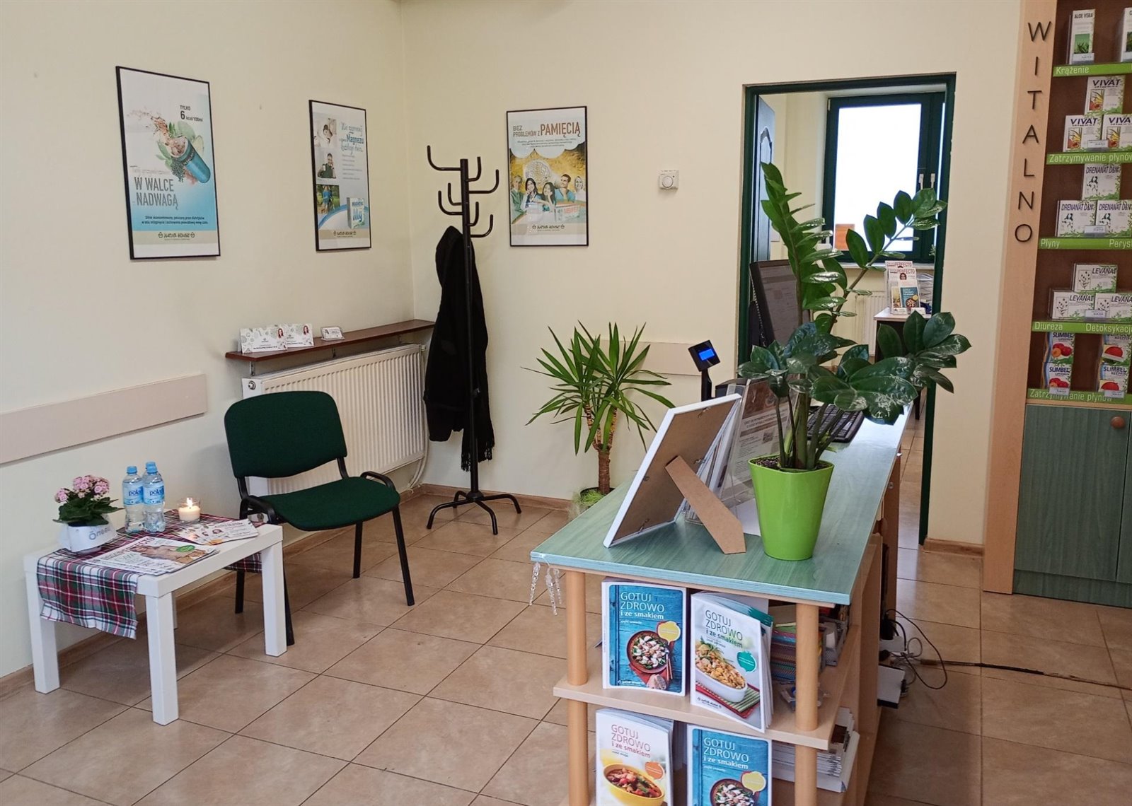 W pełni wyposażona sala sprzedaży, gabinet dietetyka oraz zaplecze. W lokalu są wszystkie potrzebne do prowadzenia działalności meble i urządzenia, w tym wagi i komputery.