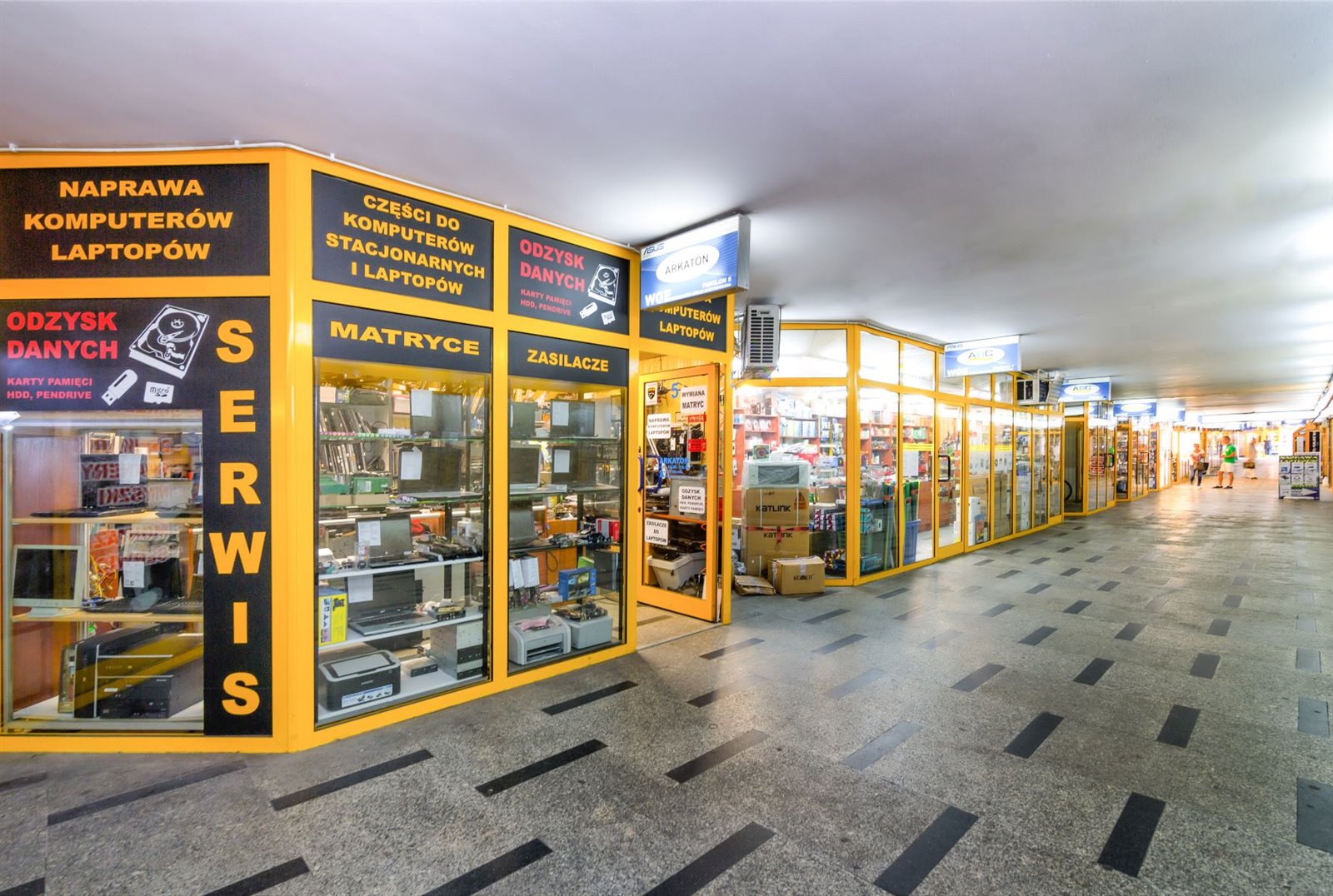 2 pasaże położone w centrum W-wy, stanowiące jedną całość galerii handlowej z najemcami branży szeroko rozumianej elektroniki (sprzedaż komputerów, drukarek, laptopów i akcesoriów elektronicznych, serwisy komputerowe, akcesoria i serwisy telefonów komórkowych, muzeum gier i komputerów) wraz z pawilonami, paczkomat Allegro.