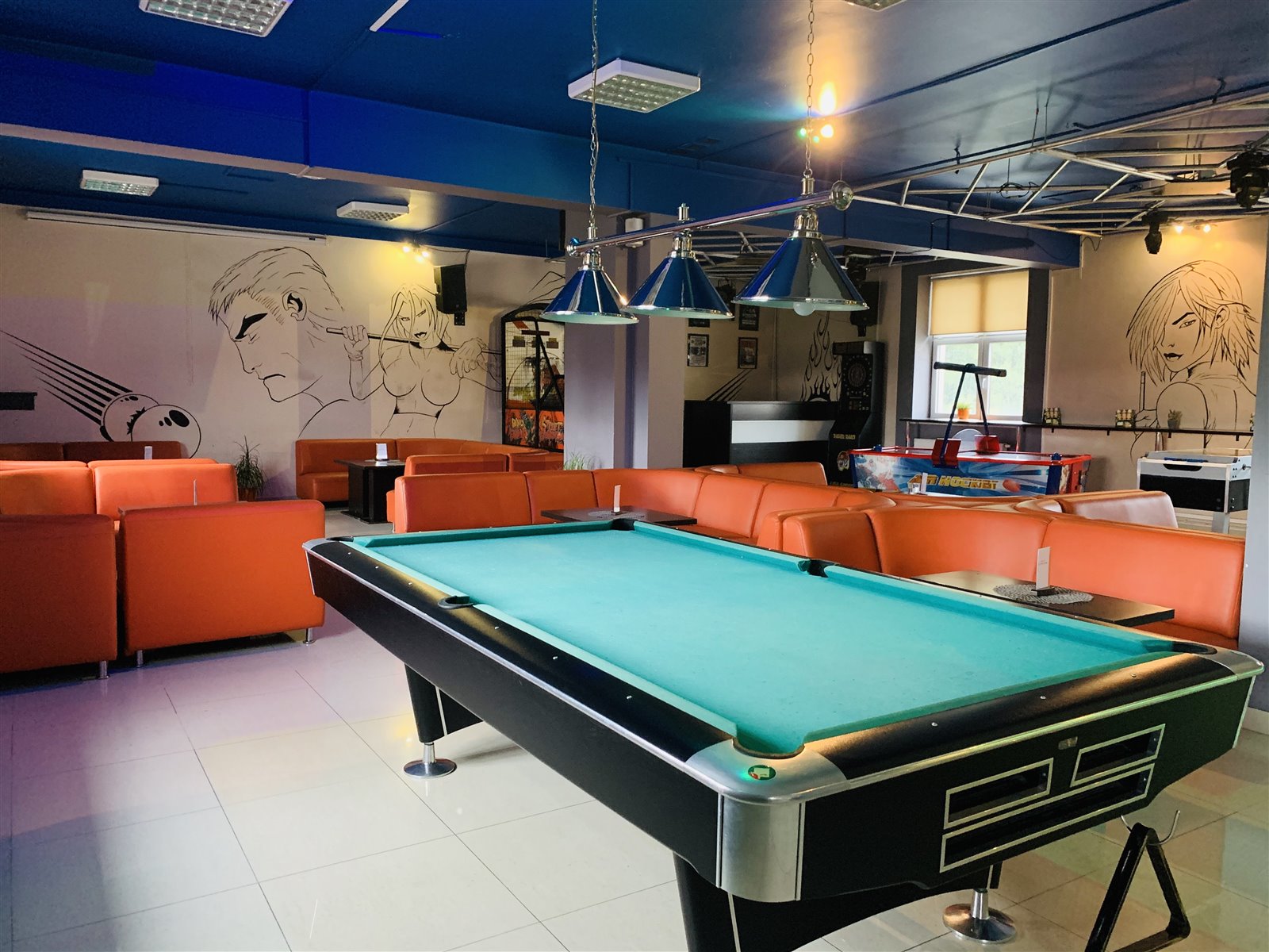 Pierwszy lokal jest to klub bilardowy. Wyposażony w 7 stołów bilardowych, loże ze stolikami na około 90 osób, wyposażony bar, zmywak i zaplecze. Dodatkowo maszyny zręcznościowe: bokser, cymbergaj, lotki, piłkarzyki.