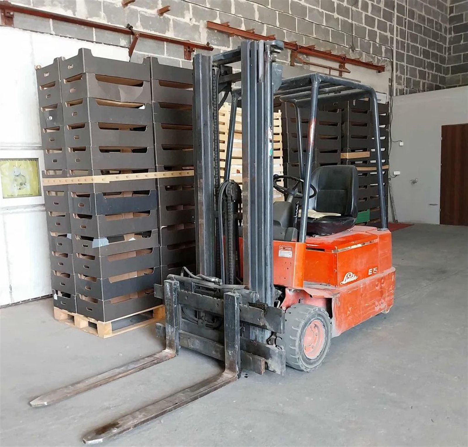 Tu postawiona jest hala z pustaka o pow. 400 m2, w której znajdują się trzy komory chłodnicze z agregatami chłodniczymi do -0,5st (kontrolowana atmosfera) o pow. 66 m2 każda oraz pakownia o pow. 200 m2 (z oknami).