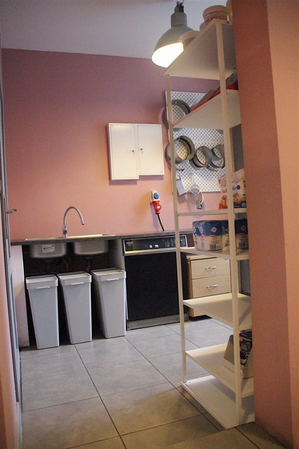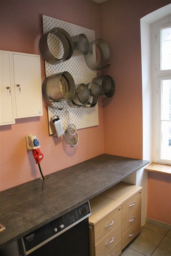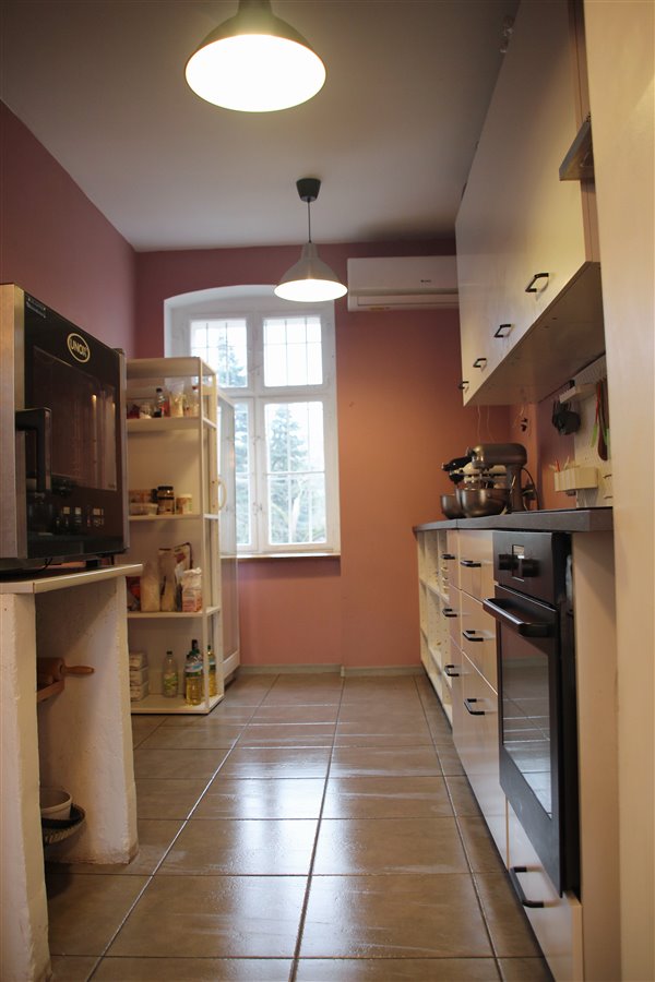 - całe wyposażenie lokalu (3 miksery kitchenaid, piec konwekcyjno-parowy UNOX, komplet mebli kuchennych, piekarnik, płyta indukcyjna podlegająca gwarancji, okap, zbudowana wentylacja, klimatyzacja, 3 duże lodówki, duża mroźnia, mała lodówka, witryna chłodząca nastawna, naświetlacz do jaj, zmywarko-wyparzarka, zlewy, umywalki, szafka pracownicza, wc, szafka "apteczna" z szufladami, komplet blach, komplet naczyń do serwowania ciast, komplet garnków, mis, miarek i innych przyrządów cukierniczych);
