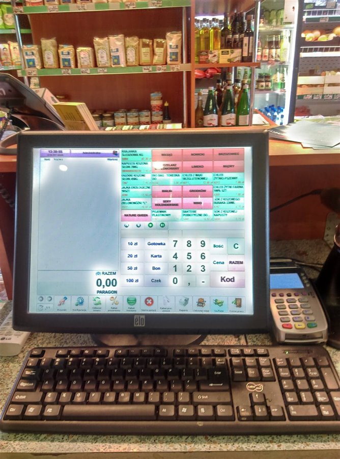 - 2 x komputer stacjonarny z systemem kasowym Small Bussines (licencja) i drukarką fiskalną (serwer+POS)+ szuflada+ terminal płatniczy + waga kalkulacyjna