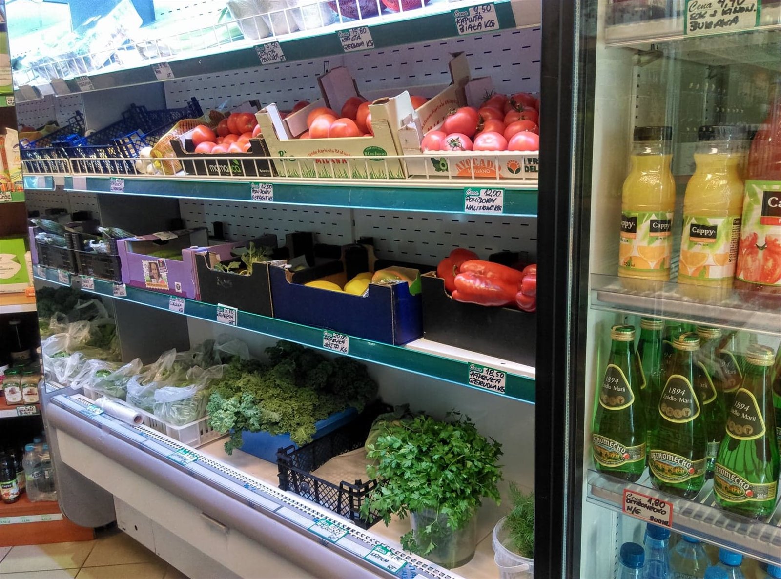 - 2 sztuki regałów chłodniczych Paros na warzywa i owoce