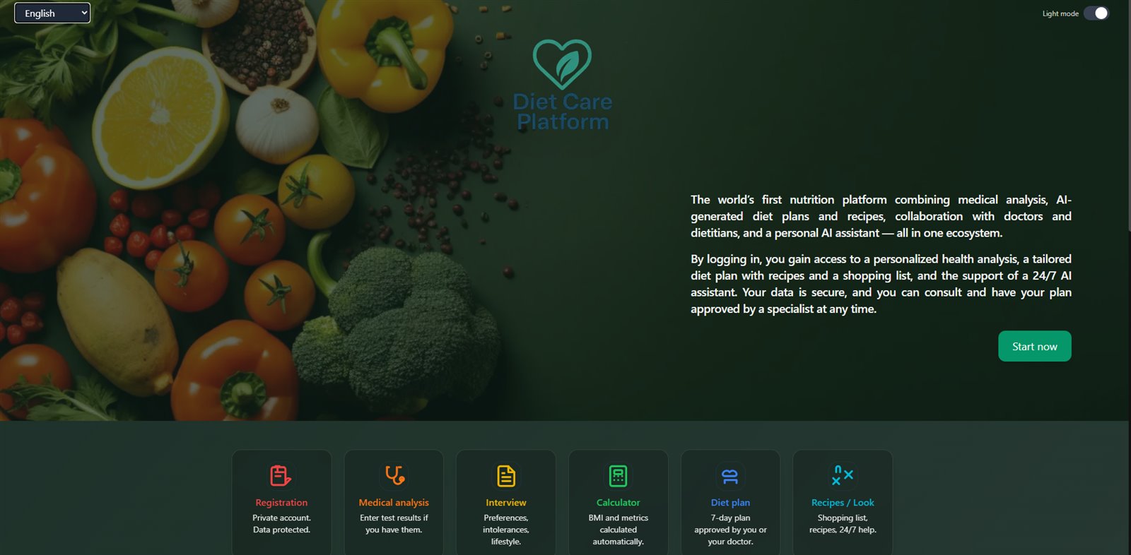 Diet Care Platform - międzynarodowa platforma dietetyki spersonalizowanej