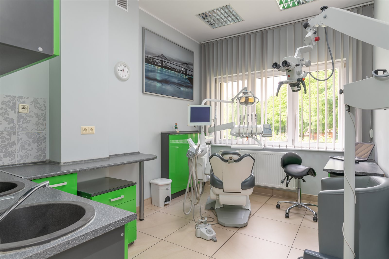- sterylizatorni (2 autoklawy (Melag Vacuklav 24-B,P&T Medical -na bieżąco serwisowane i kontrolowane testami), zgrzewarka, maszyna do smarowania końcówek, myjka ultradźwiękowa, lodówka, pralkosuszarka)