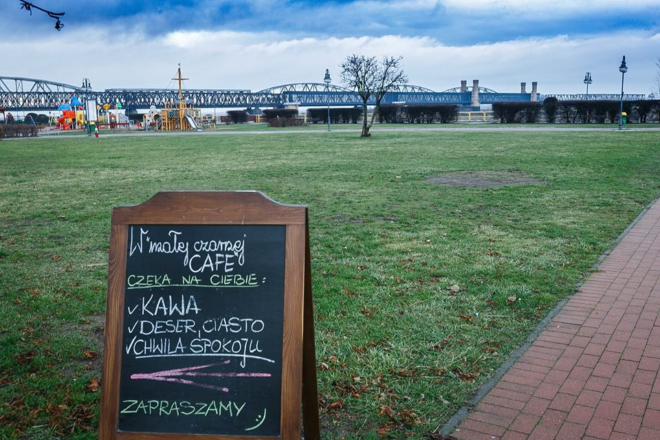 Kawiarnia mieści się w najbardziej urokliwym miejscu miasta, na Bulwarze Wiśnanym, gdzie znajduje się największe centrum rekreacji i wypoczynku mieszkańców, organizowane sa imprezy plenerowe i sportowe. Z okien rozpościera się widok na zabytowy most i rzekę