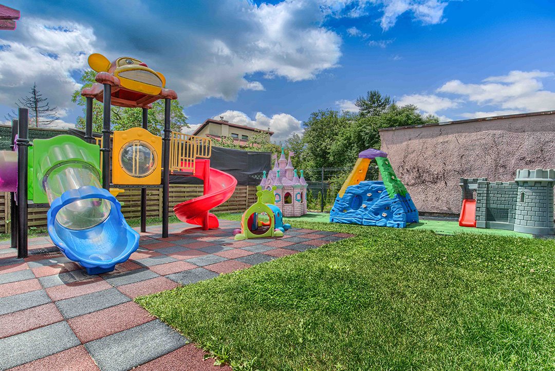 Na działce o pow. 574 m2 oprócz budynku przedszkola jest zagospodarowany i ogrodzony plac zabaw dla dzieci z piaskownicą i zabawkami.