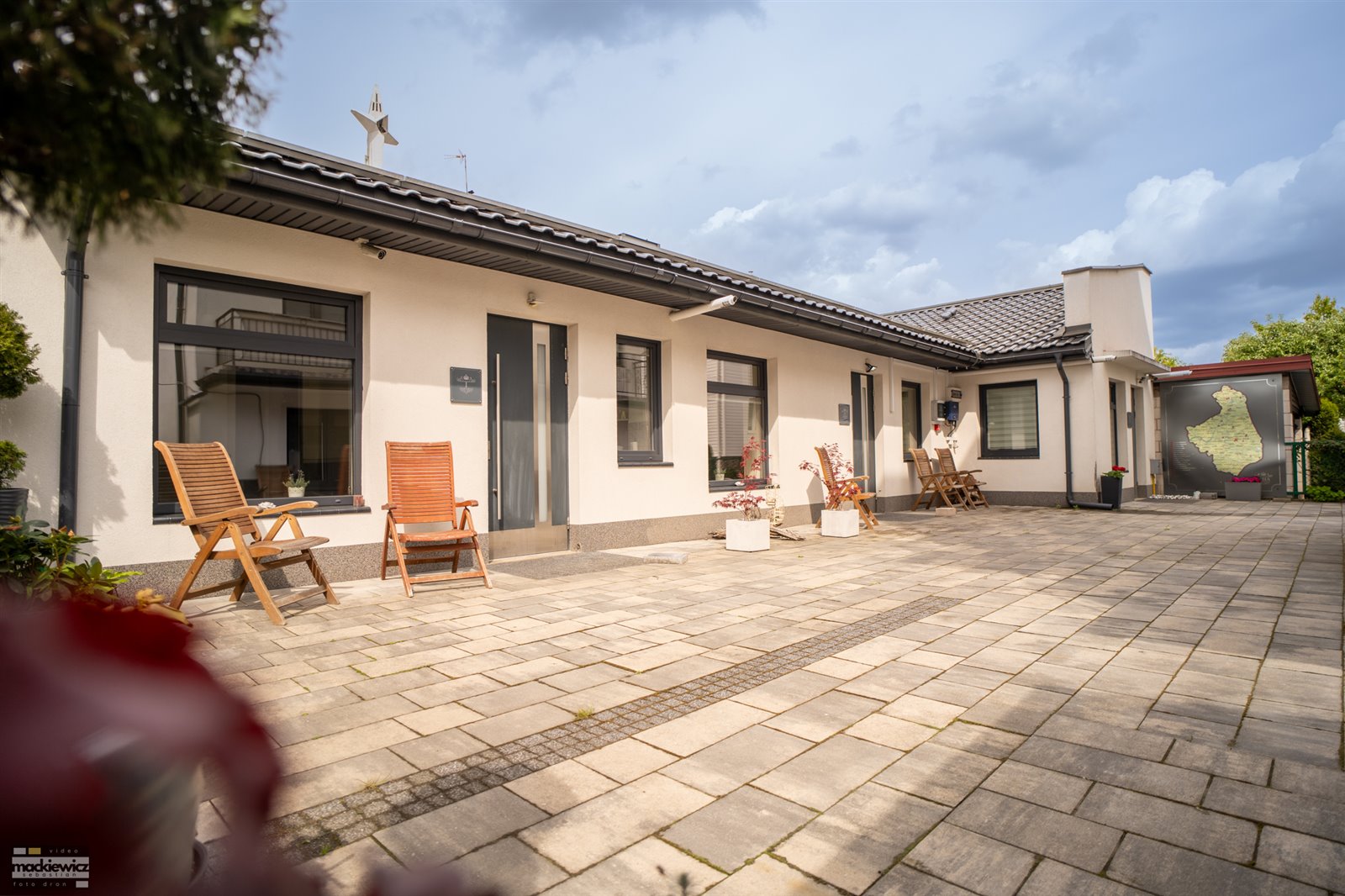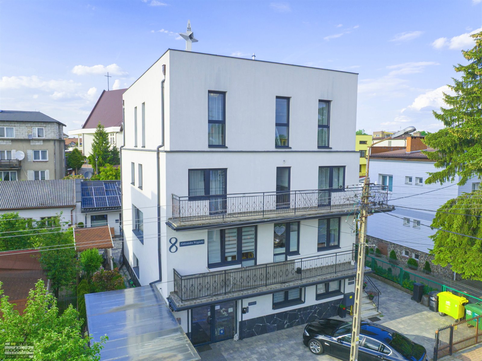 Parking przed budynkiem + wiata dla samochodów