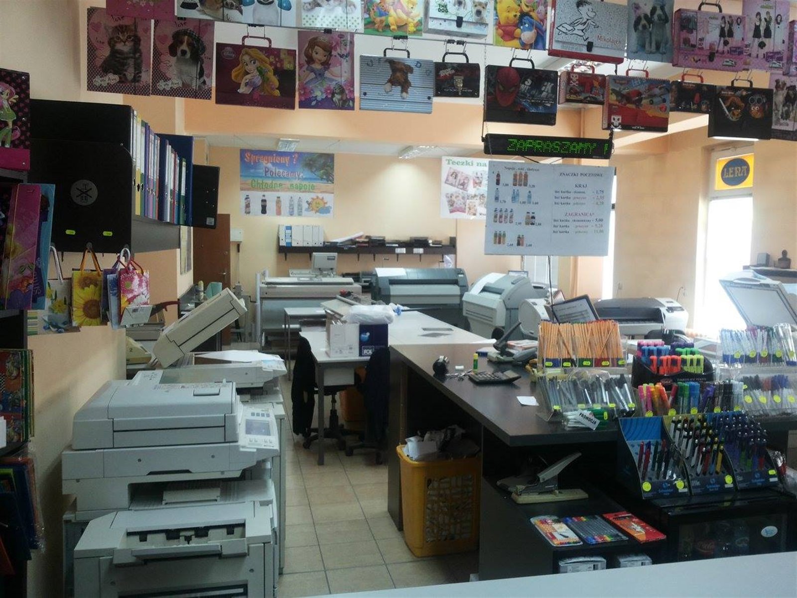 W cenie również papiery i tusze/tonery do druku, towary biurowe handlowe.