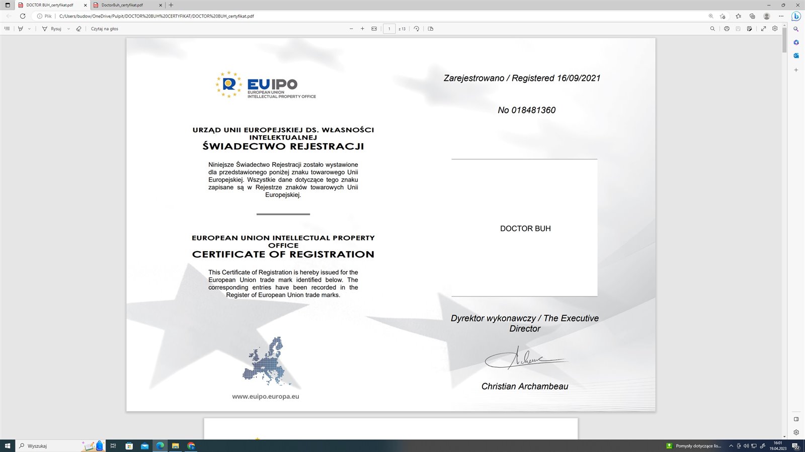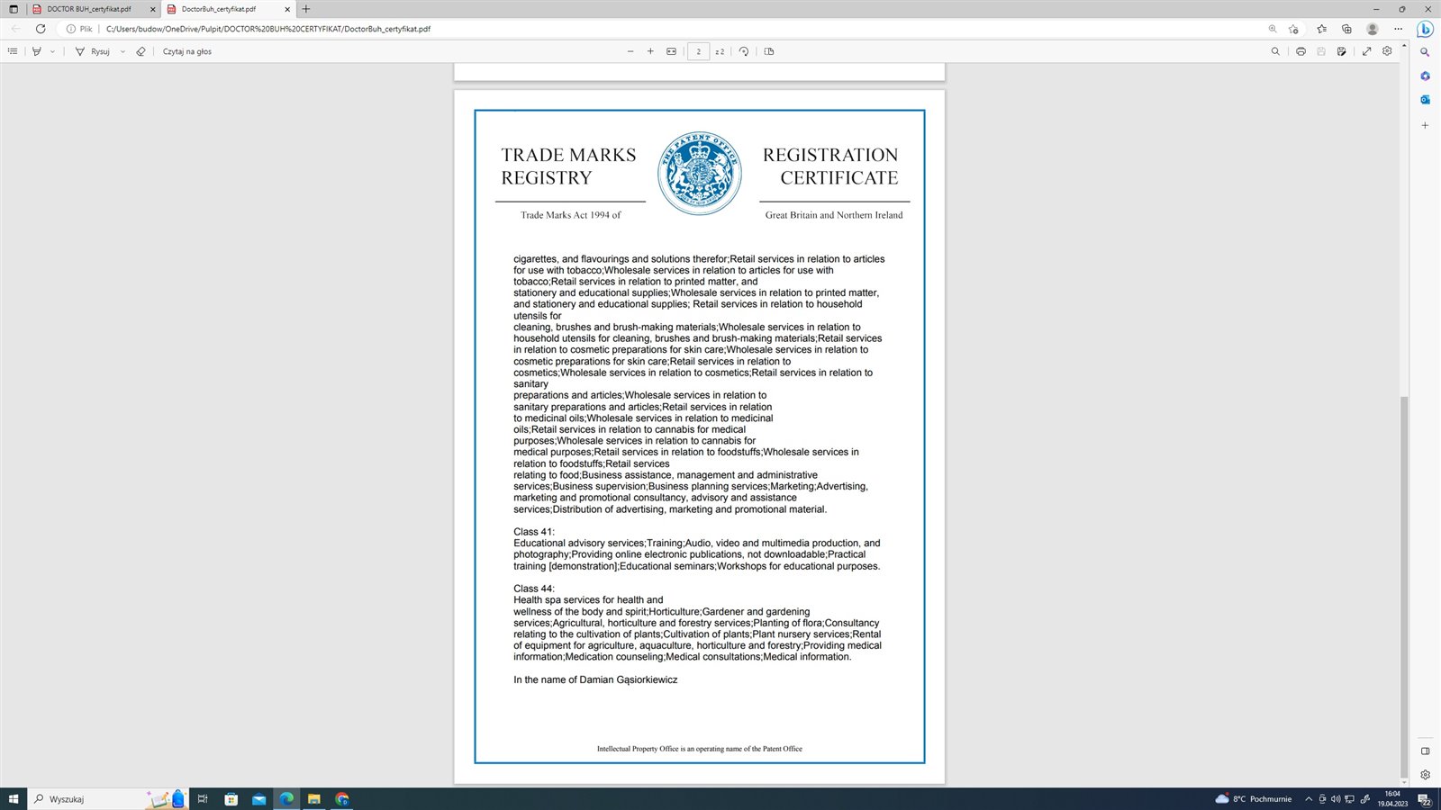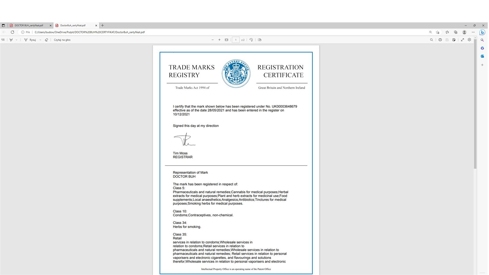 Doctor BUH - znak towarowy na Europę, Anglię i Irlandię (branża konopna)