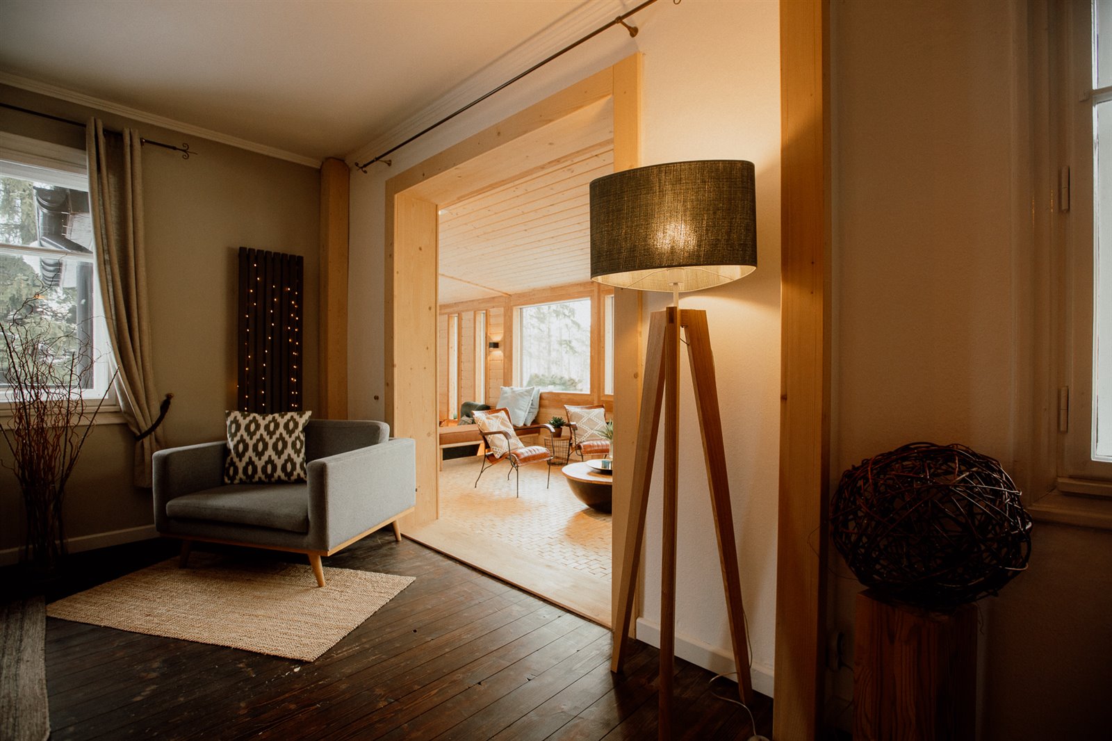 Nieruchomość składająca się z odrestaurowanej willi, pochodzącej z lat 50. zeszłego stulecia oraz budynku rekreacyjnego, w którym m.in. zlokalizowana jest sauna i który może służyć na mieszkanie właścicieli.