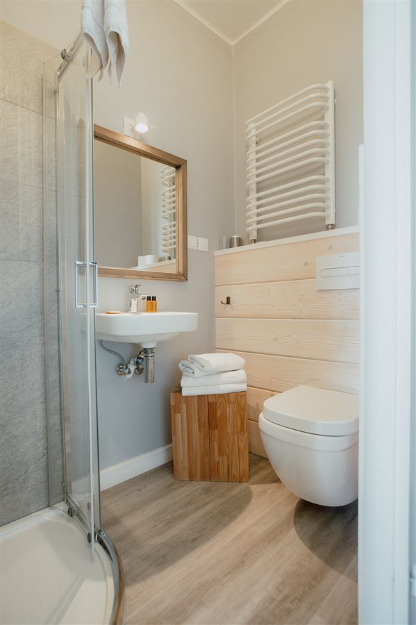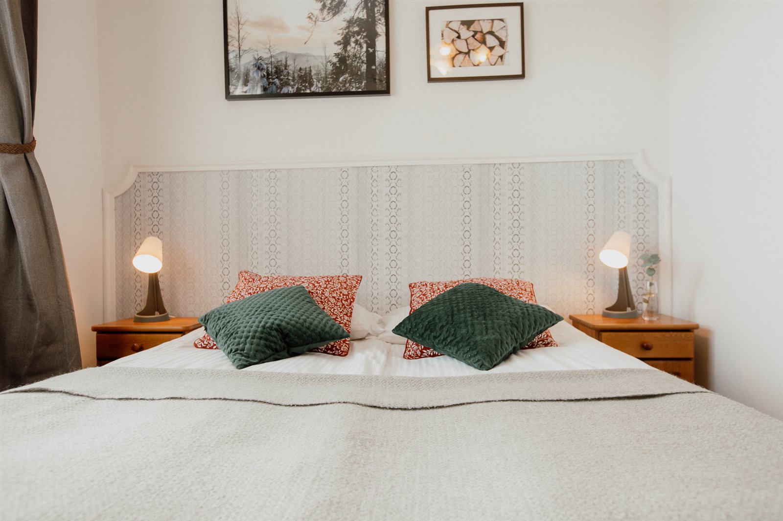 W willi zlokalizowano 8 pokoi, wszystkie z łazienkami (5 pokoi 2-osobowych, dwa pokoje 3-osobowe i 1 pokój 4-osobowy, w 2 pokojach możliwość dostawki). Dodatkowo na parterze znajdują się części wspólne: duży salon z dwoma kominkami podzielony na strefy, jadalnia oraz toaleta. Na parterze znajduje się również kuchnia nieudostępniana gościom. W piwnicy zlokalizowano magazyn, kotłownię, pralnię, pomieszczenie do przechowywania rowerów lub w zimie nart oraz mały warsztacik.