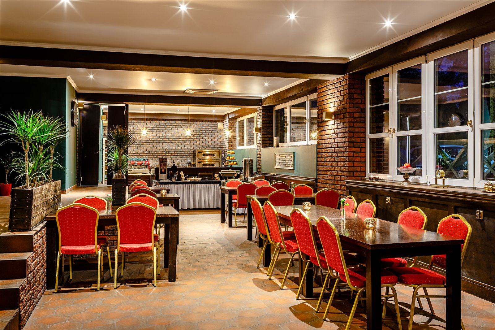 - Budynek główny (500 m²) – recepcja, restauracja, klub bilardowy