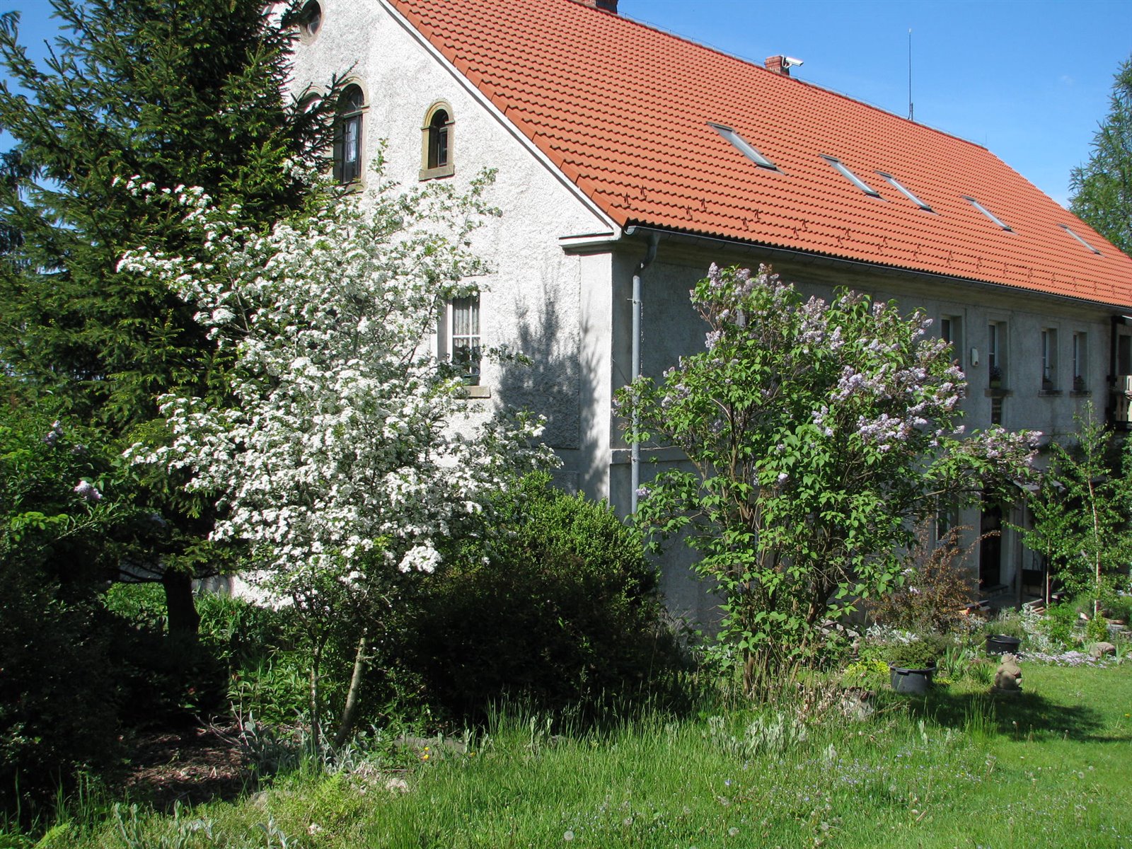 • Zagospodarowany ogród z drzewami owocowymi, starymi drzewami oraz ozdobnymi krzewami