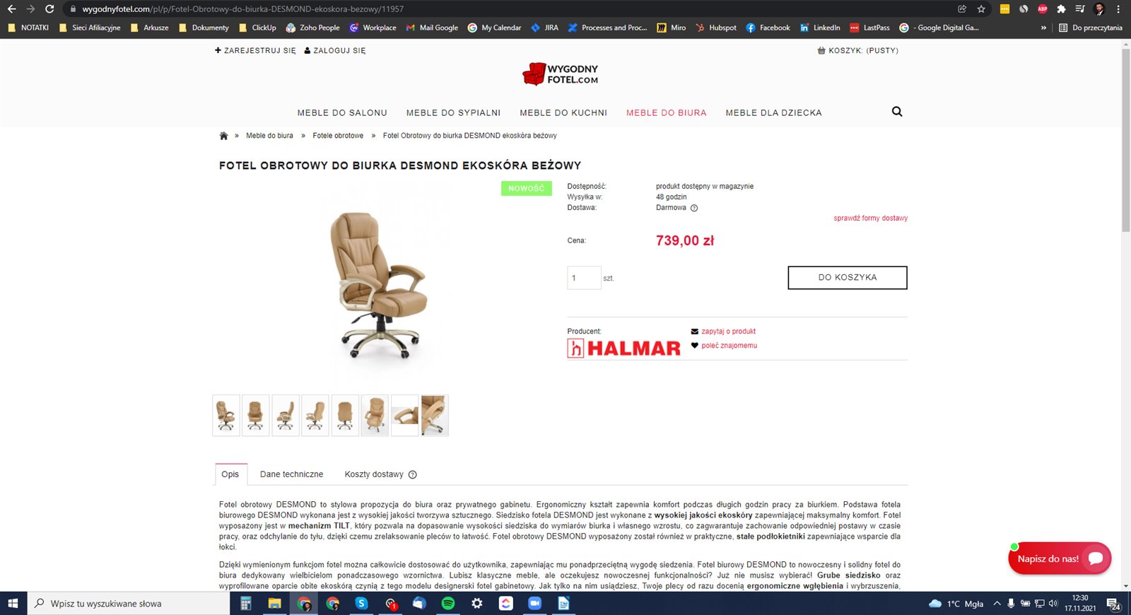 Zbudowałem bardzo dobrą relację z dużym importerem mebli, tj. Halmar Sp. z o.o. i to asortyment tego importera znajduje się na sklepie. Kontrakt z Halmar jest podpisany na czas nieokreślony. Pracuję z Halmarem całkowicie w modelu dropshipping, gdzie zamówienia z opóźnioną realizacją stanowią maksymalnie 5%. Średnia marża 25-30%.