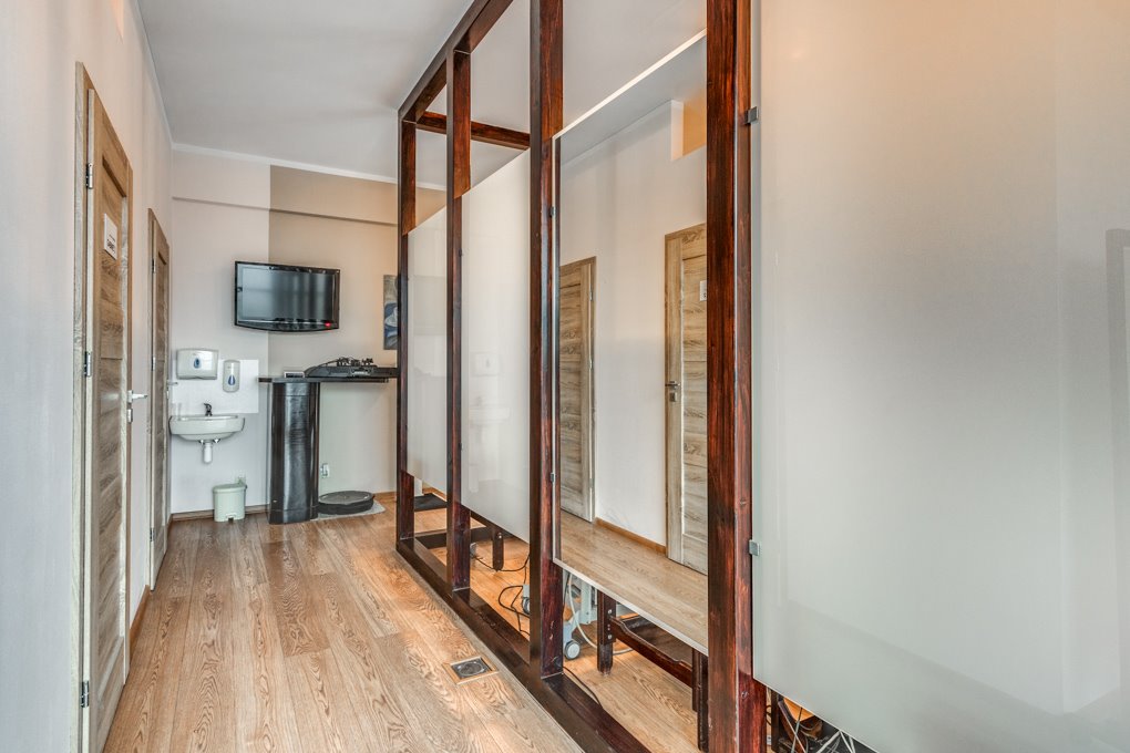 Nagłośnienie pomieszczeń w formie radiowęzła z możliwością wyboru muzyki w poszczególnych gabinetach.