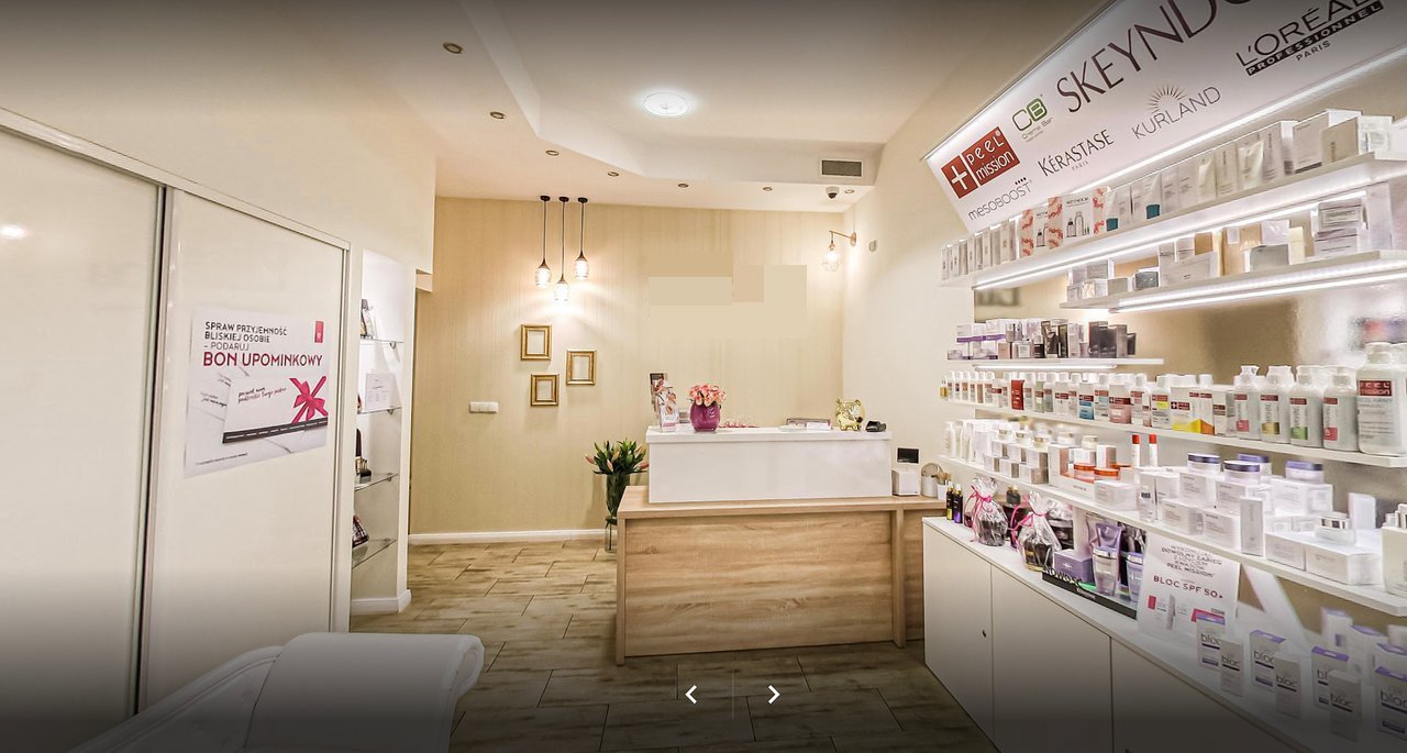 - recepcja do obsługi klientów z miejscem sprzedaży kosmetyków i poczekalnią