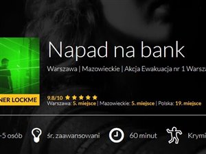 4 pokoje aktualnie działające (wysokie rankingi) + 1 pokój będzie otwarty w najbliższym miesiącu (Hit! -Harry Potter) + 2 pokoje do utworzenia (gotowa przestrzeń, część wyposażenia).