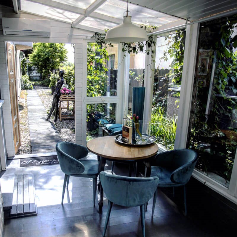 The living room has 140 m2 + heated garden + external garden (there is a smoking area and a baroque zone for non-smokers)