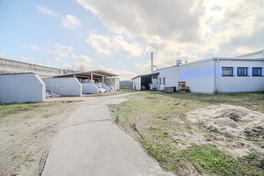 • Zabudowania: Powierzchnia budynków produkcyjno-biurowych wynosi 2 553 m², dodatkowo dostępna jest hala namiotowa o powierzchni 300 m².