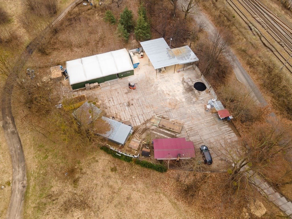 Teren obiektu jest ogrodzony i wyłożony płytami betonowymi, a na terenie znajdują się także waga najazdowa, ładowarka, kontener biurowy oraz trzy garaże blaszane.