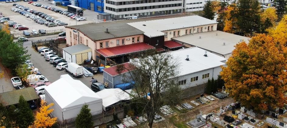 Firma działa we własnej nieruchomości - powierzchnia działki 4000 m2, powierzchnia hal produkcyjnych, magazynów i biur -2600m2