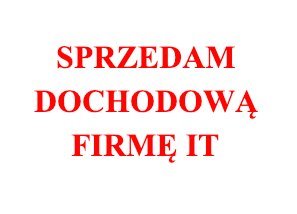 Sprzedam prosperującą firmę działającą w zakresie oprogramowania dla firm (własne, autorskie rozwiązanie). Firma posiada stabilną bazę klientów oraz potencjał nowej sprzedaży.