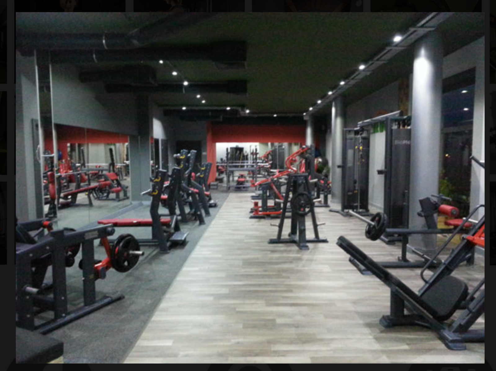 Zaplecze sanitarne: dwie oddzielne szatnie z prysznicami, recepcja. Na terenie obiektu znajduje się sauna, miejsce na solarium oraz witryny z odżywkami i suplementami diety.
