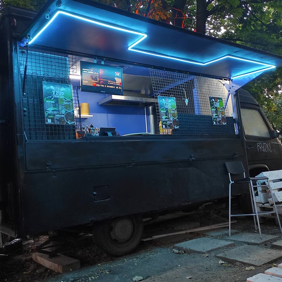 Dużym plusem jest to, że Food Truck znajduje się w bardzo dobrej lokalizacji. Ogromy ogródek przed Food Truckiem przy Odrze, co w sezonie letnim daje spory potencjał. Fajny widok z ogródku na Odrę oraz zachód słońca. W tym samym miejscu znajduję się klub nocny. Oprócz wszystkiego niezbędnego sprzętu do prowadzenia biznesu Food Truck też posiada dostawczy samochód VW Golf.