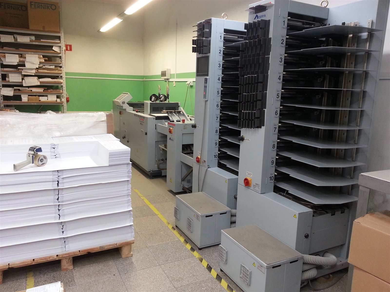 • różne urządzenia introligatorskie: złamywarka, zszywacz, bigówko-perforówka,