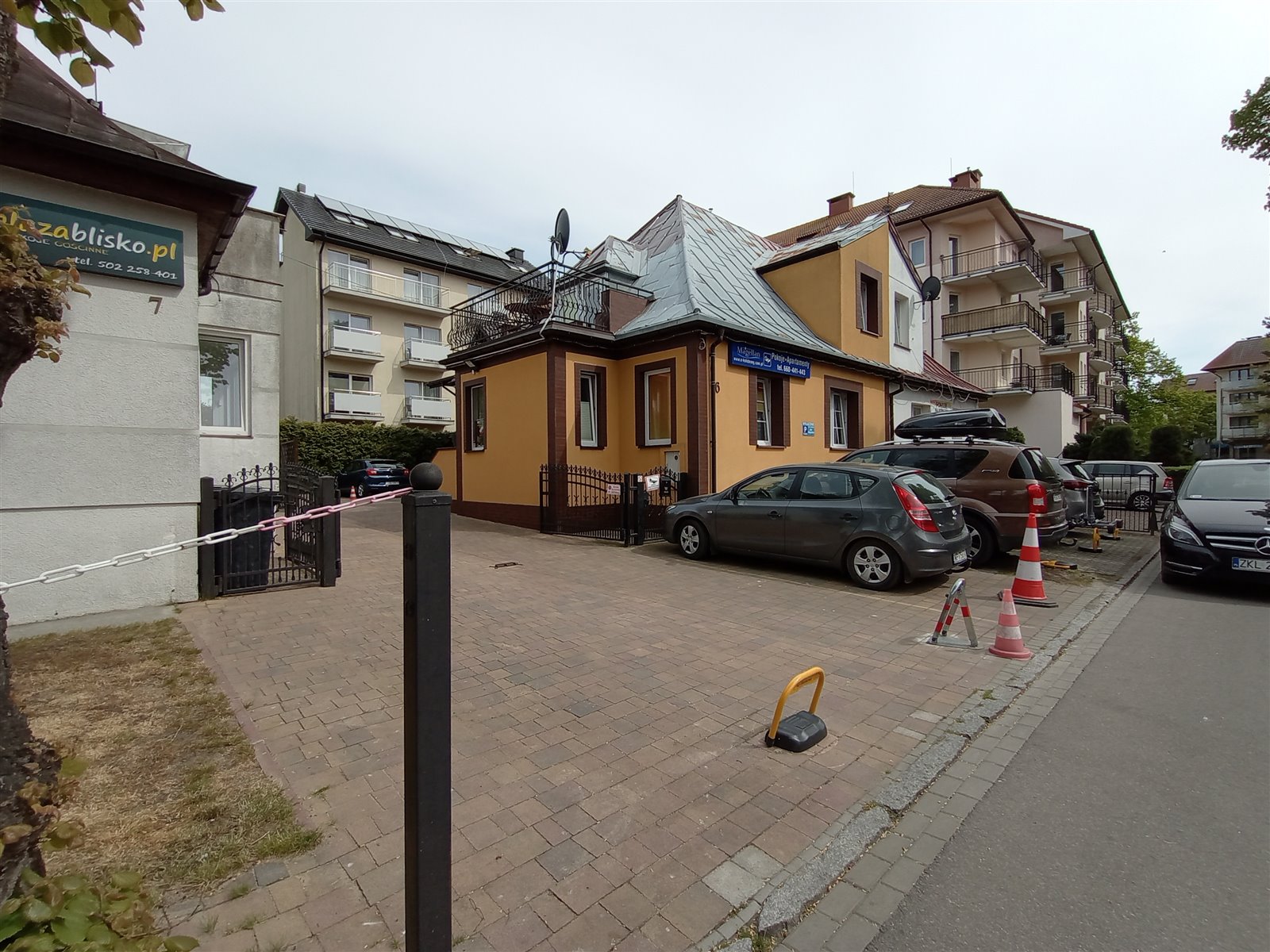 Pensjonat posiada aż 8 własnych miejsc postojowych co w tej lokalizacji stanowi doskonałe uzupełnienie oferty. Lokalizacja w pierwszej linii zabudowy od morza. Praktycznie w sąsiedztwie promenady.