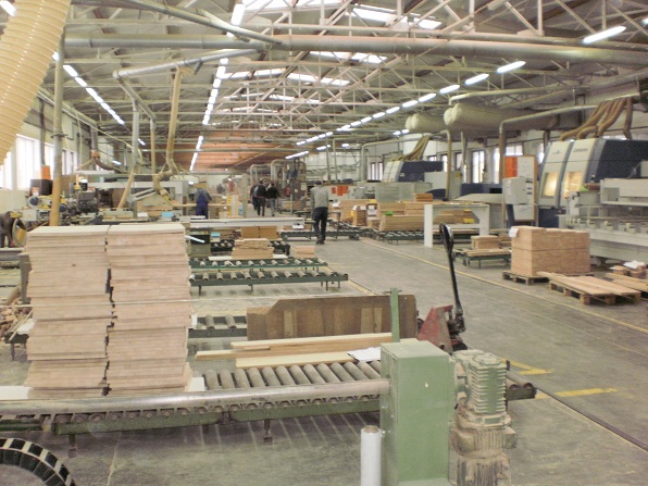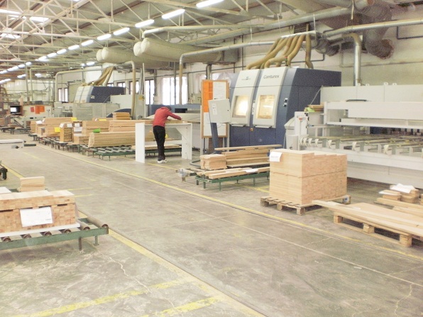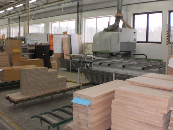 The factory manufactures solid wood furniture (oak, beech, birch, European and Canadian alder), particle boards, MDF boards, and cellular wood panels glued with natural and artificial veneers. The surface of the furniture is protected with the application of natural oils and waxes, clear varnish, and ecological paints using a state-of-the-art technology system.
