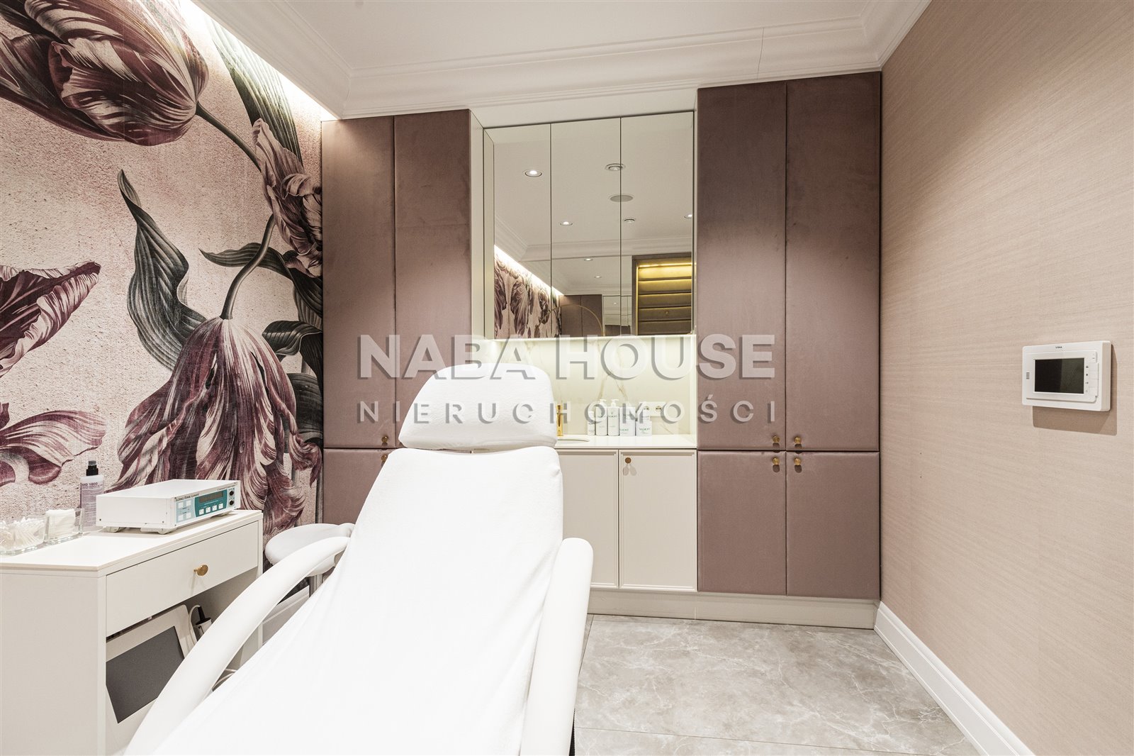 Gabinety wyposażone są w eleganckie, elektryczne, podgrzewane fotele kosmetyczne typu „balerine”. Stan idealny. W ramach sprzedaży biznesu pozostaje całe wyposażenie i urządzenia: infuzja tlenowa „Intraceuticals”, Geneo ITP, Bloomea, Cryolift Filorga, oraz Higrometr (do badania poziomu wilgoci w skórze), sterylizator. Stanowisko do manicure w całości wyposażone: frezarka, lampa Led.