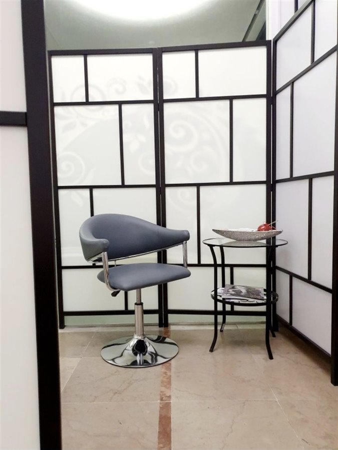 1. Poczekalnia- dwa fotele dla klientów + stolik. Obok poczekalni stanowisko z ekspresem do kawy, czajnikiem, lodówką itd. Dodatkowo poczekalnia przed gabinetem.