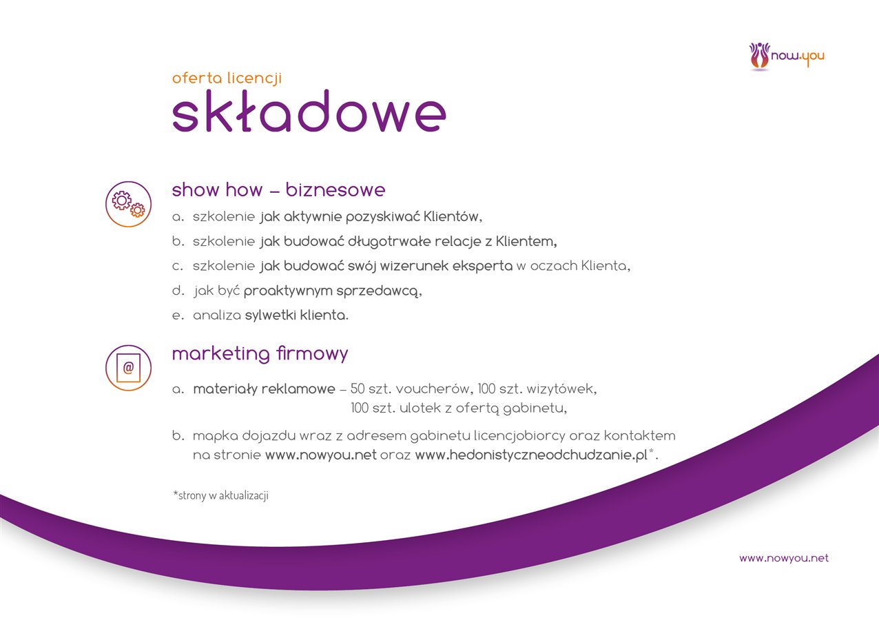 - szkolenia biznesowe tj. jak pozyskać Klientów, jak budować wizerunek eksperta, jak być proaktywnym sprzedawcą oraz analiza sylwetki Klienta.