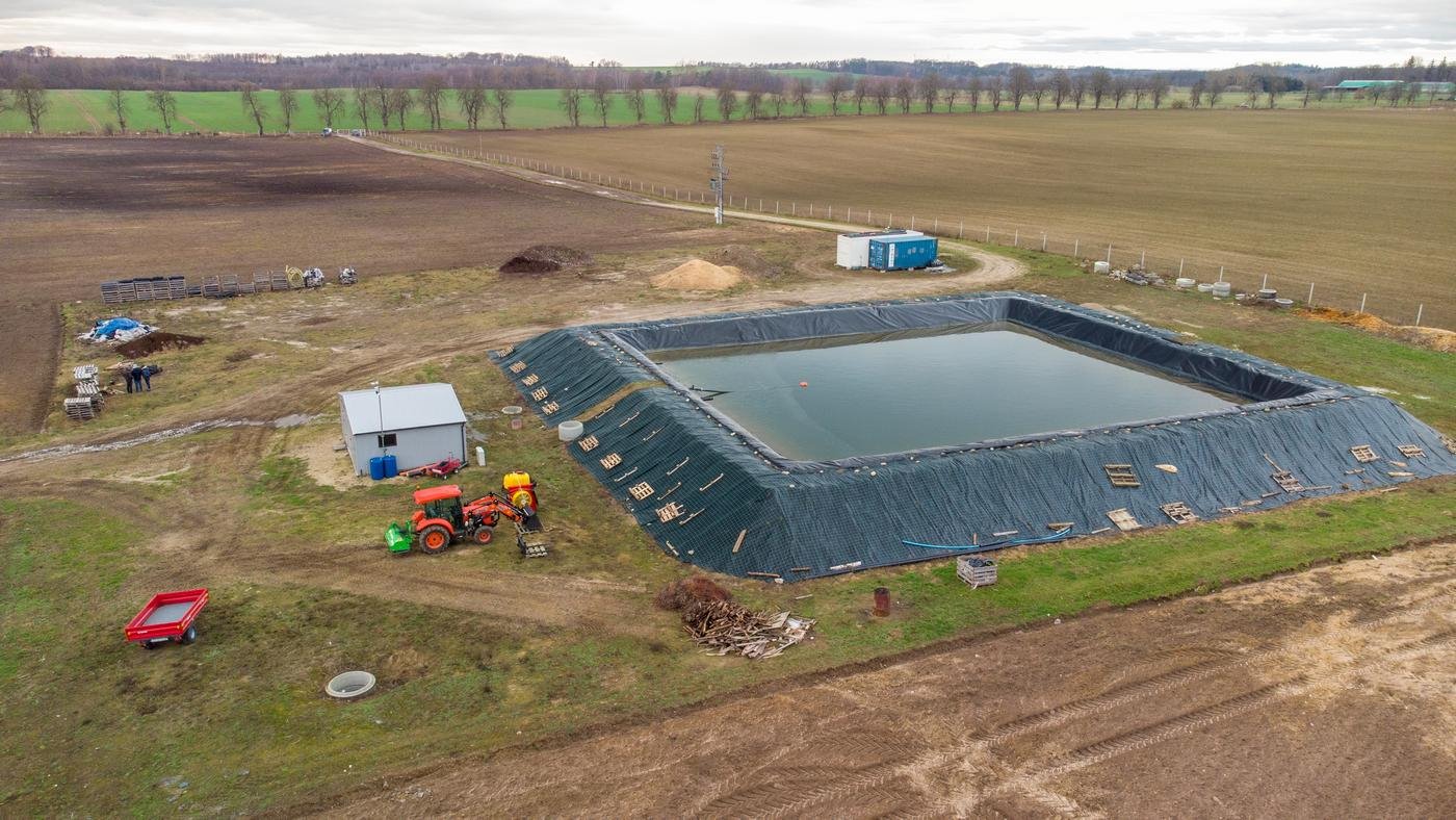 Na terenie obiektu znajdują się dwa zbiorniki wodne o pojemności 500 m3 pod system melioracyjny i 3000 m3 z układaniem folii oraz systemem rurociągów do odprowadzania i napełniania wody.